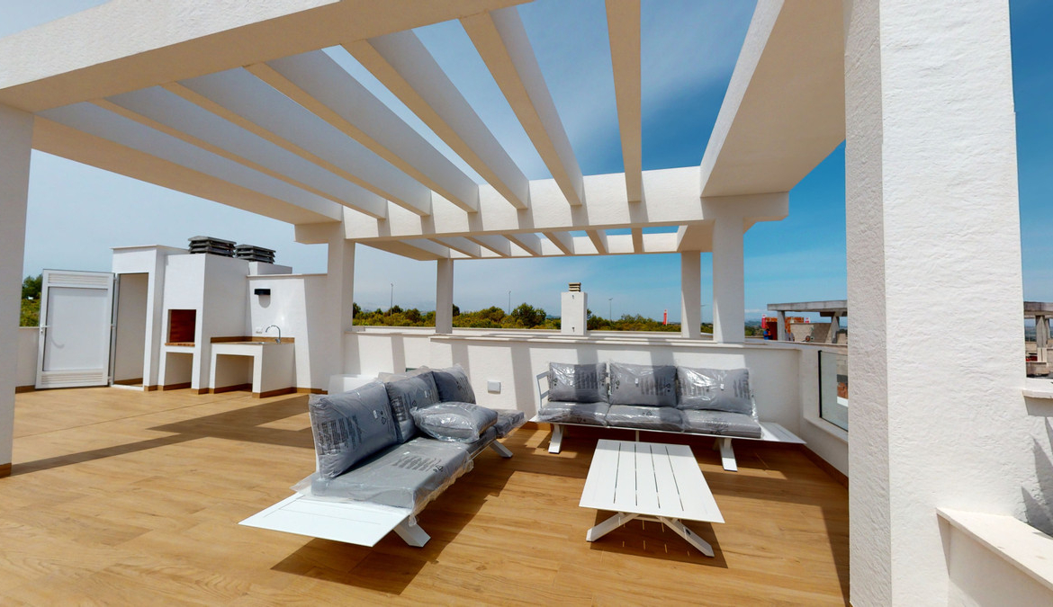 The luxury bungalows have 2 bedrooms and 2 bathrooms from 131 m2. In a development with 3 swimming pool areas, jacuzzi area, fitness area, paddle tennis court, children's area, mini golf and green areas.