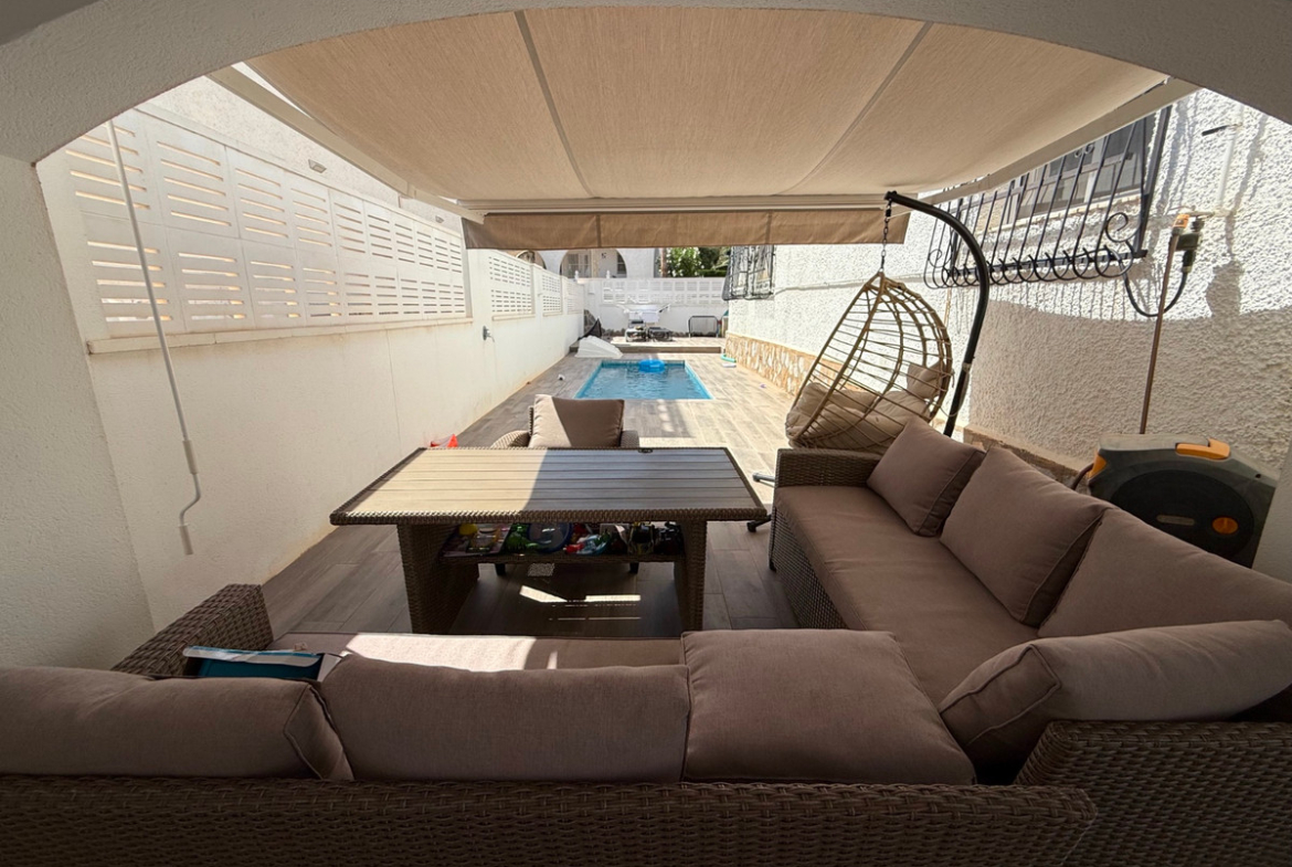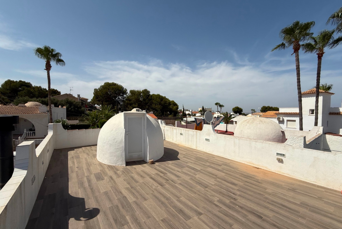 Beautiful, modernized detached villa with a solarium and open (sea) views, located in Las Filipinas, Villamartin (Orihuela Costa). The house is ideally and centrally located within walking distance of all kinds of facilities and necessities, the white sandy beaches that Orihuela Costa has to offer can be reached in no time by car. The house comes fully furnished and has 2 bedrooms with 2 en-suite bathrooms. For more information or a (video) viewing, please contact us as soon as possible!