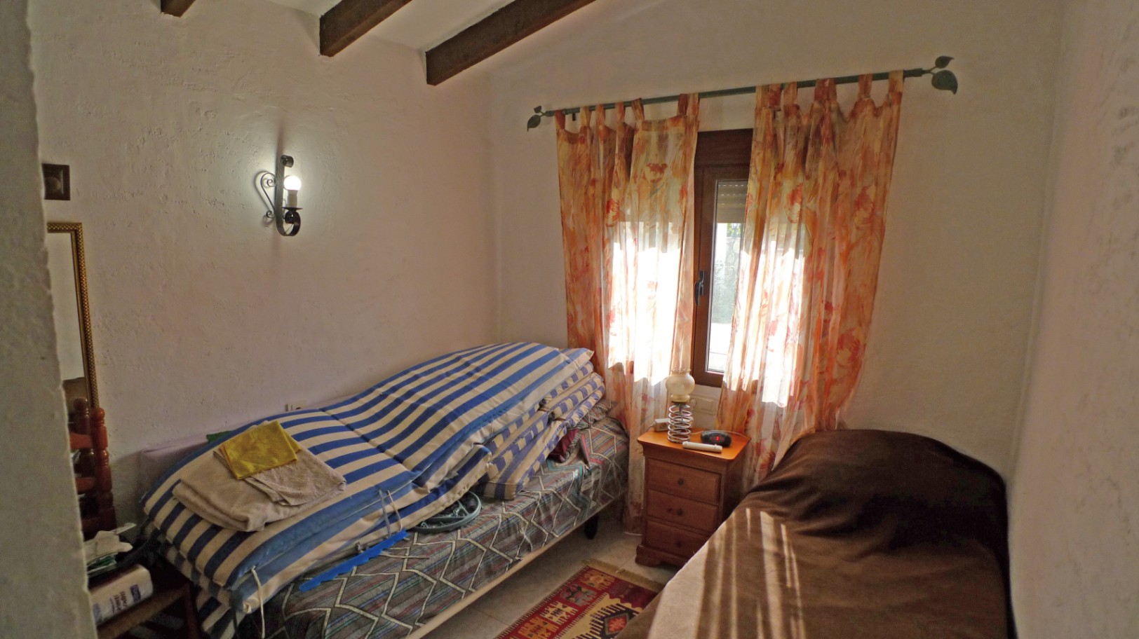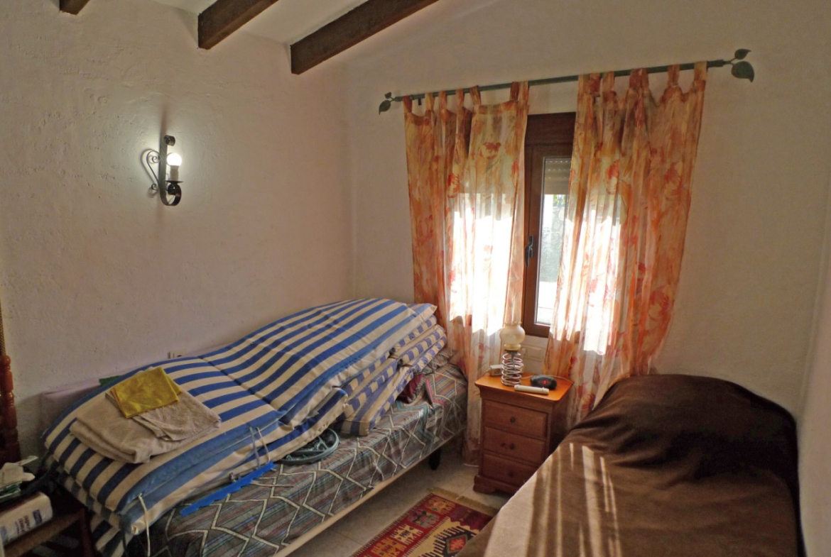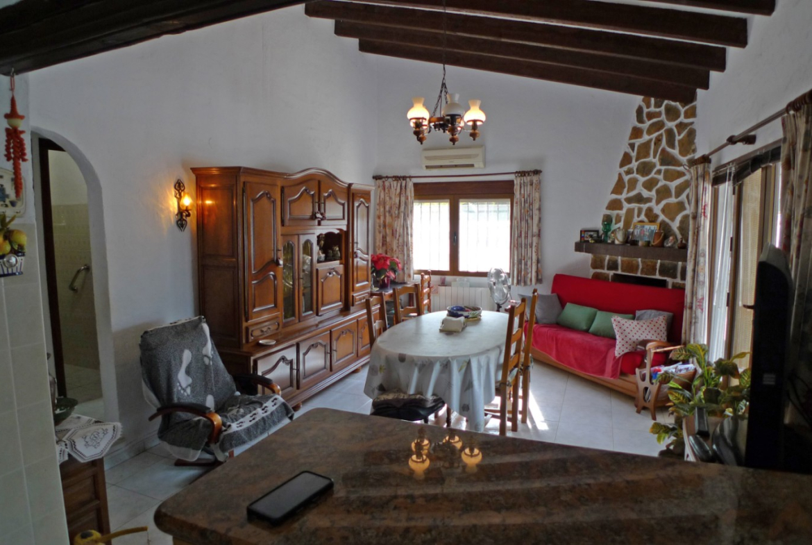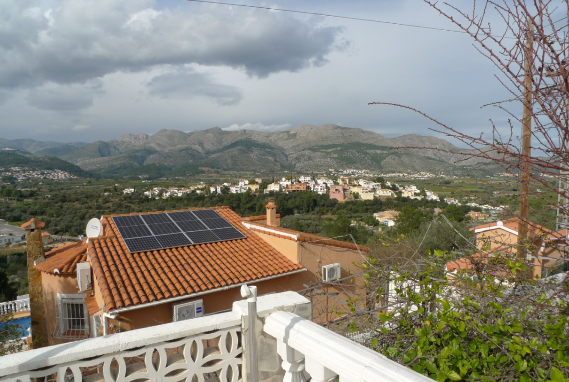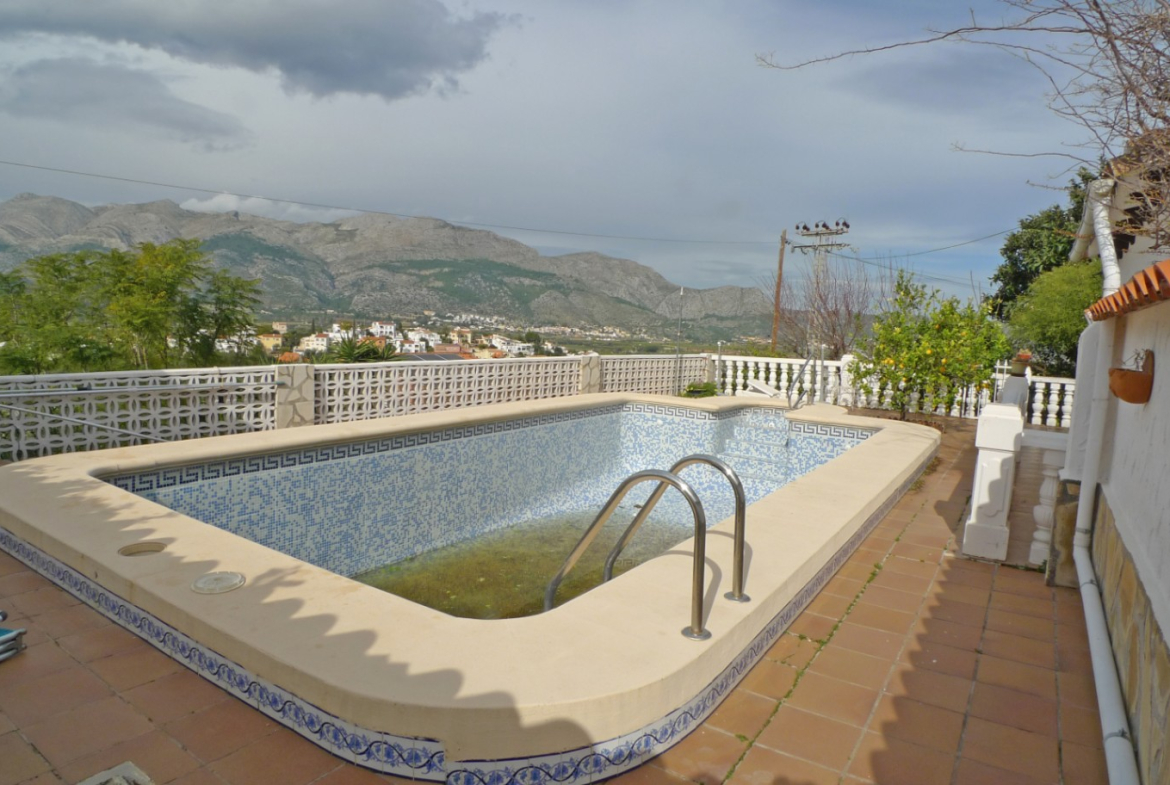 Cosy two-bedroom villa for sale located in a quiet residential area on the outskirts of Orba, in a very peaceful residential setting at the end of a cul-de-sac, ensuring privacy and little traffic. The property has access via a large gate with space for two vehicles, as well as a separate pedestrian entrance. The property, laid out on one floor, offers a bright living/dining room with open kitchen, two spacious bedrooms and a full bathroom strategically located between them. The living room leads directly to a charming covered naya, perfect for year-round enjoyment, located opposite the private swimming pool. The terrace offers beautiful open views of the valley and mountains, creating an ideal environment for relaxing and enjoying the Mediterranean climate. To the side of the house there is an additional large terrace and a practical barbecue area, perfect for gatherings with family and friends. The property is in need of refurbishment, making it an excellent investment opportunity or the ideal project to customise the property to your liking in a privileged location. The centre of Orba is within walking distance, while Dénia and its magnificent beaches are only 20 minutes away. Access to the AP-7 motorway is also about 20 minutes away, providing excellent connections. A fantastic opportunity to create your dream home on the Costa Blanca.