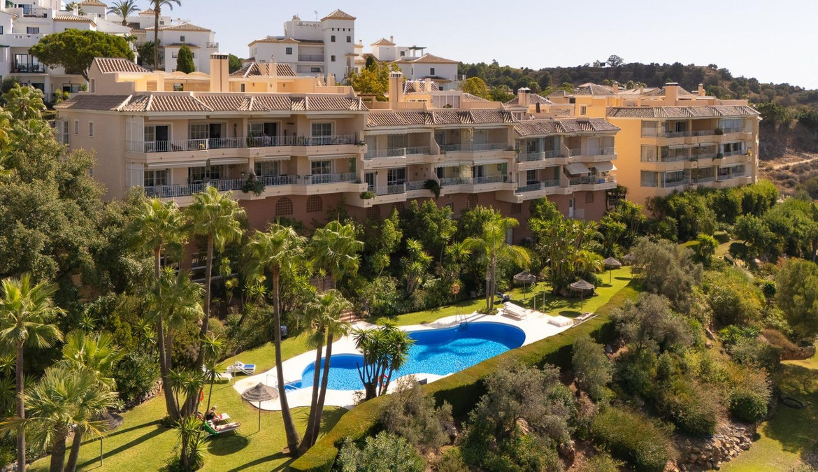Stunning duplex in Alhaurin Golf with exceptional views of the golf course and in an impeccable condition. The property is very spacious and consists of a large living-dining room with a fireplace opening onto a fabulous and spacious fully glazed terrace with spectacular views of the course. There is also a large fully equipped kitchen as well as two double bedrooms, one en suite and with direct access to the terrace as well as a second bathroom. Upstairs there is a third bedroom and another bathroom and an additional bonus is a second summer lounge ideal for family gatherings. From here we access to a beautiful terrace with a barbecue area and unbeatable 360º views. Also there is a parking space, storage room, swimming pool and communal gardens. A property with many possibilities and great potential.