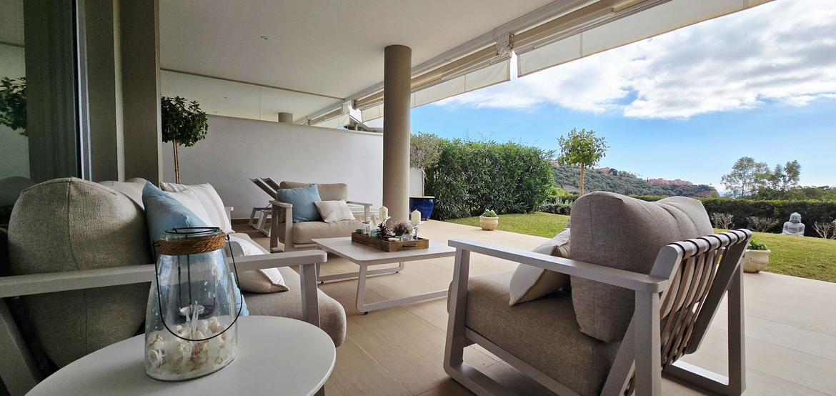 This contemporary 3-bedroom, 2-bathroom ground-floor apartment offers the ideal blend of comfort, style, and outdoor living. With direct access to a large sunny terrace and a beautiful garden with private use, yet manicured by the gardeners of the community, it’s perfect as a holiday retreat, year-round residence, or high-yield investment. Bright & Spacious Living – An open-plan living and dining area flows seamlessly onto a generous outdoor terrace with immediate access to a well-kept garden, creating an extended living space ideal for relaxing or entertaining.