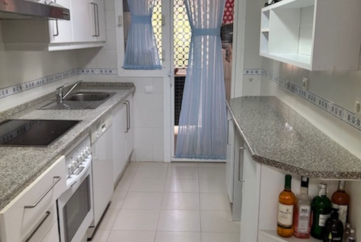 The bright and airy living-dining area opens onto a sun-drenched terrace, perfect for relaxing or entertaining. You’ll also find a fully equipped kitchen with a separate laundry area for added convenience.