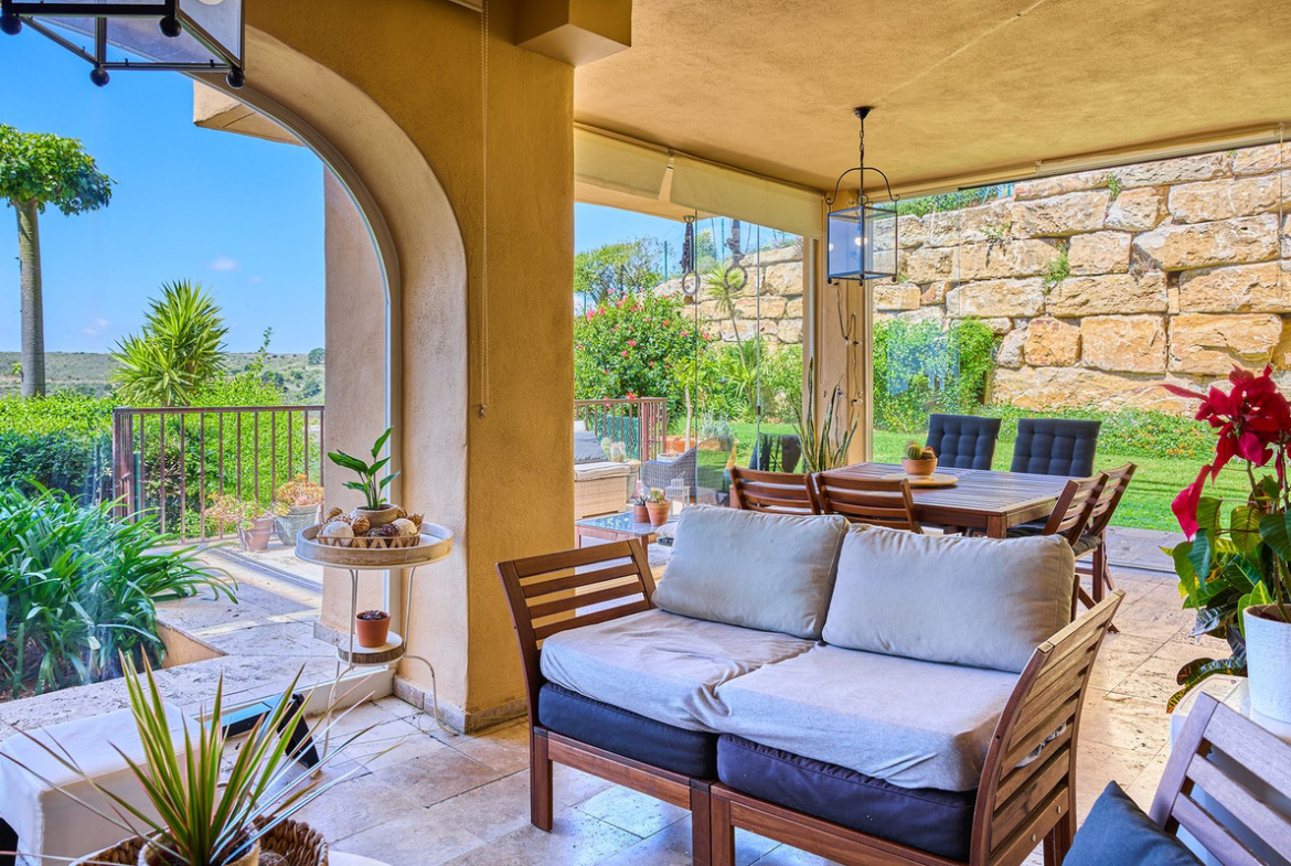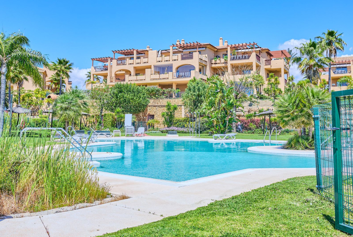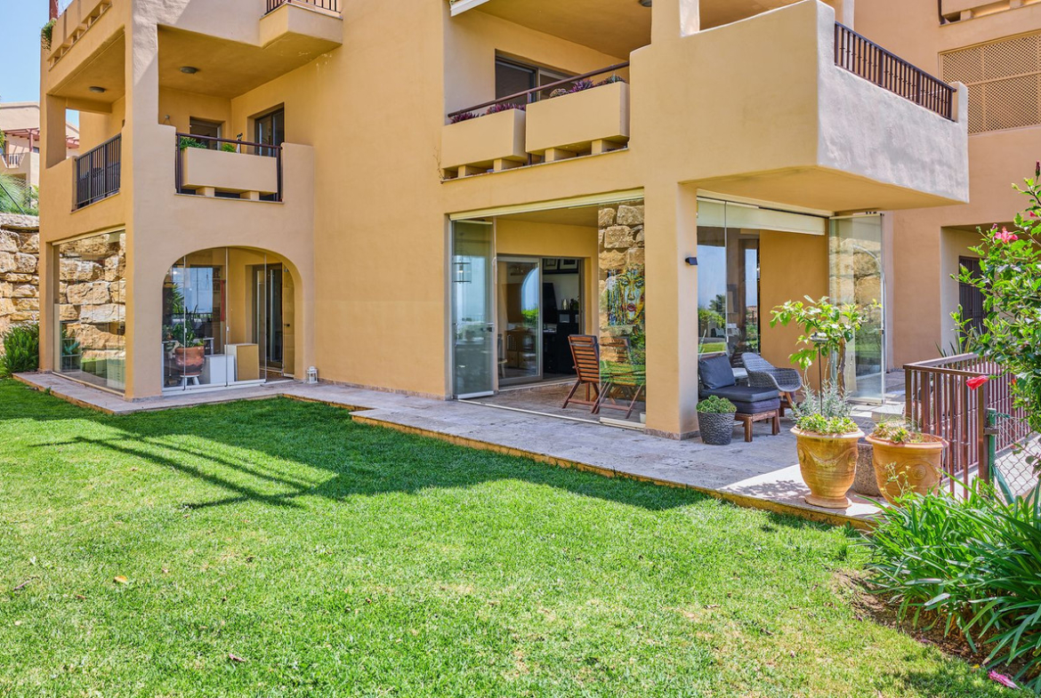 Incredible ground floor apartment for sale in Hacienda de Señorío de Cifuentes! This charming property offers spectacular views of the sea and Gibraltar. Enjoy the tranquility and beauty of the surroundings from its spacious terraces, connected to a large garden, both with sea views.