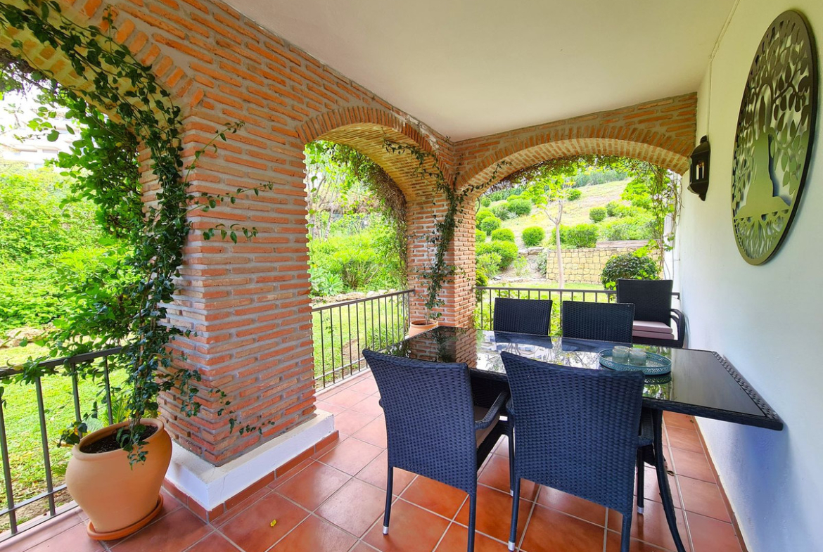 Located in a quiet and safe residential area, surrounded by nature, this apartment is very well connected to the AP7 motorway, which connects the entire Costa del Sol. Just a 5-minute drive from Guadalmina Alta and the prestigious Atalaya School, with the beach, supermarkets, pharmacies, and restaurants 10 minutes away. The property was completely renovated in 2025, so everything is as good as new. Upon entering the apartment, we find an entrance hall leading to the spacious living-dining room with beautiful views of the garden, which also has access to a large, partially covered terrace. It also has a spacious, brand-new, modern kitchen equipped with high-end appliances and access to the separate laundry room. The property's bedrooms and bathrooms are distributed through a corridor. The spacious master bedroom features a large built-in wardrobe with access to and views of the terrace/garden. It also has a fully renovated en-suite bathroom in a contemporary style, equipped with a shower and a window that provides abundant natural light and ventilation. The two single bedrooms have built-in wardrobes and are bright. One of them has access to the garden. The second bathroom is located at the entrance to the hallway, connecting to the common areas of the house (living/dining/kitchen) and is located next to the two single bedrooms. This full bathroom also has a shower. The property enjoys the convenience of having a private parking space, in addition to enjoying the community gardens and saltwater pools. WE RECOMMEND A VIEWING!!