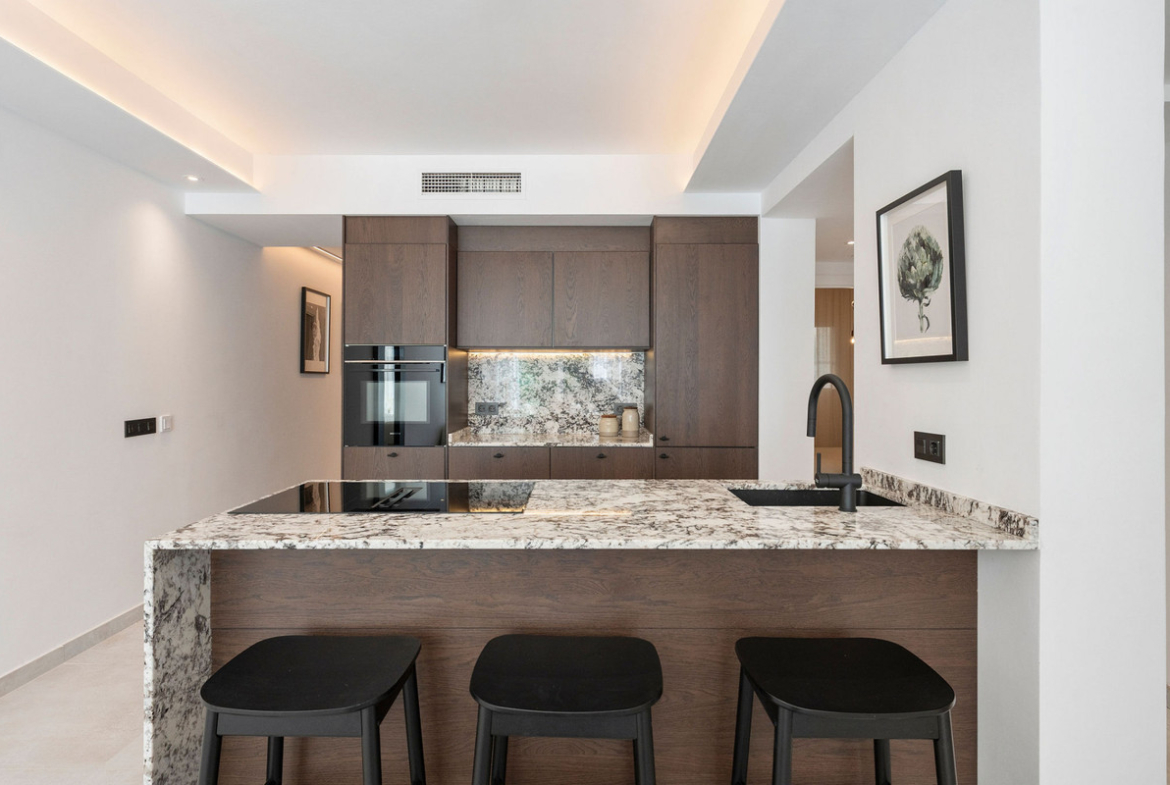 This apartment represents a refined living experience in Terrazas de La Quinta, a peaceful residential enclave in Benahavís. This fully renovated three-bedroom, three-and-a-half-bathroom apartment is set within a secure gated community and offers a harmonious blend of contemporary design, functional layout, and an elevated position with panoramic views over the La Quinta Golf Course. With a total built area of 101 square meters, including 83 square meters of interior space and an 18-square-meter southwest-facing terrace, this home has been carefully planned to provide both comfort and style in equal measure.