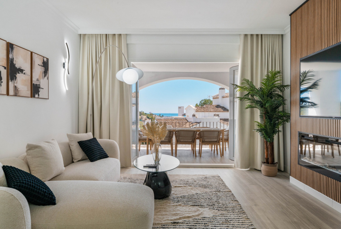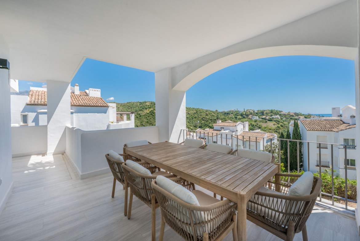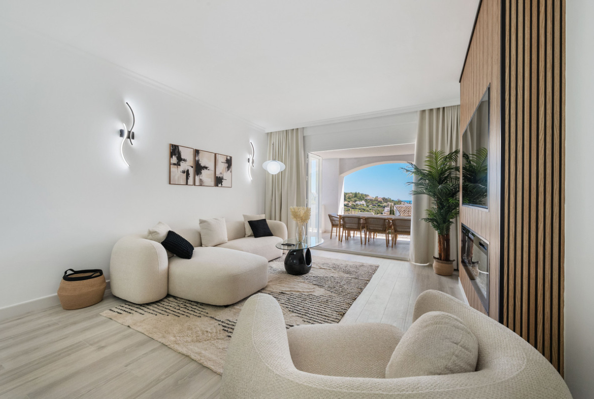 Set within the peaceful residential area of La Quinta in Benahavís, this refreshed middle-floor apartment in Altos de La Quinta offers open sea views and a bright south-east orientation.