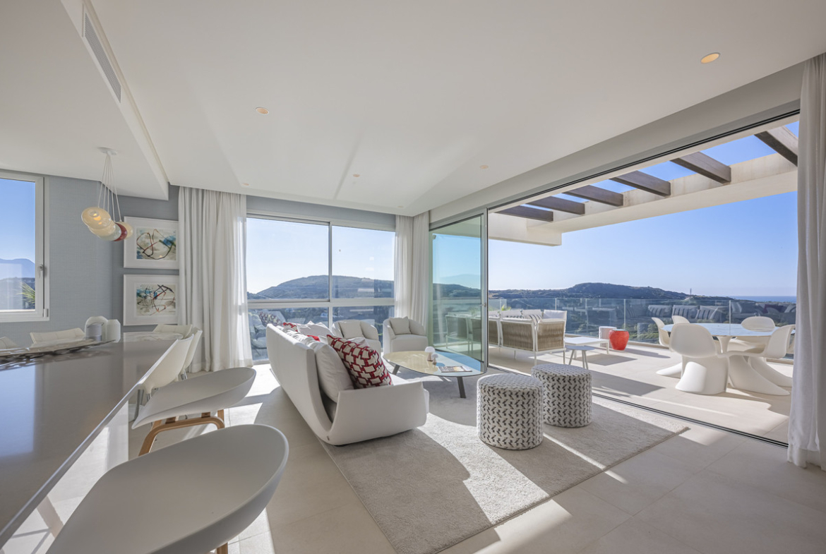 Exquisite apartment located in the prestigious Marbella Club Hills development. A 5-star residence set within a privileged natural environment, in collaboration with the iconic Marbella Club Hotel. With wide, unobstructed panoramic views of the Mediterranean and Africa, it is surrounded by an impressive mountainous landscape. This property offers a sophisticated lifestyle in perfect harmony with nature, just minutes from Puerto Banús and Marbella.