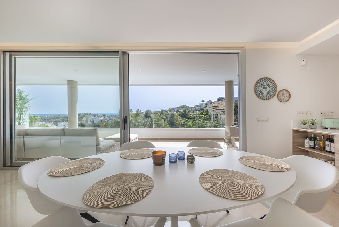 The property features three spacious bedrooms, two of which have en-suite bathrooms, while the third has access to a separate bathroom. From the living room, kitchen, master bedroom, and both terraces, you can enjoy magnificent open views that create a sense of space and tranquility.