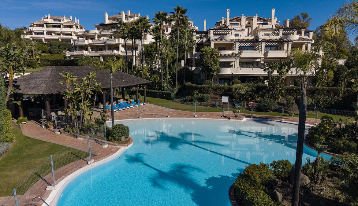 The secure, gated development provides outstanding resort-style amenities, including five outdoor swimming pools, an indoor heated pool, a fully equipped gym, and spa. Ideally positioned, the property benefits from easy access to everyday amenities, supermarkets, and several renowned golf courses, as well as excellent connections to the coast and nearby towns Benahavís and San Pedro de Alcántara.