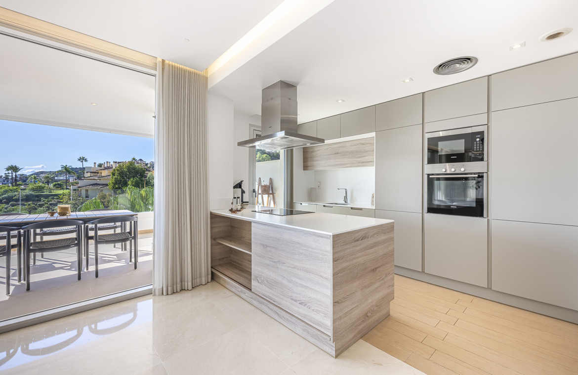 Located in the exclusive gated community of Botanic in La Reserva del Alcuzcuz, this exceptional duplex penthouse offers one of the most captivating viewpoints. From its elevated position, 180º panoramic views unfold across the green valley, the Mediterranean Sea, and, on clear days, the distant outline of Morocco. Surrounded by nature yet just a short drive from the beaches of Marbella and Estepona, Puerto Banús, and the charming restaurants of Benahavís Pueblo, the location beautifully balances tranquillity and accessibility.