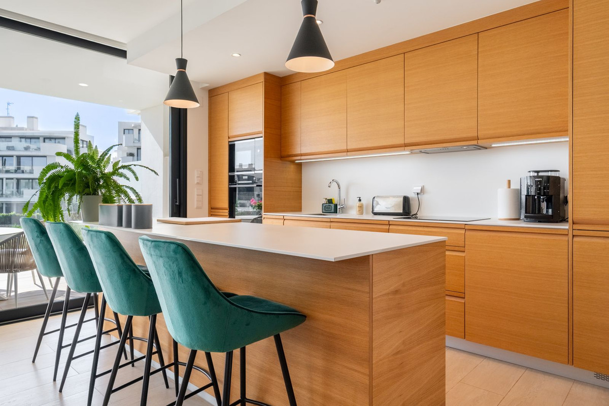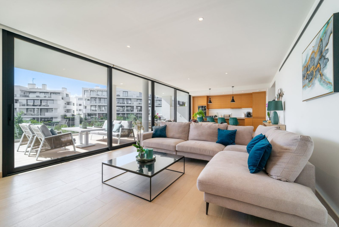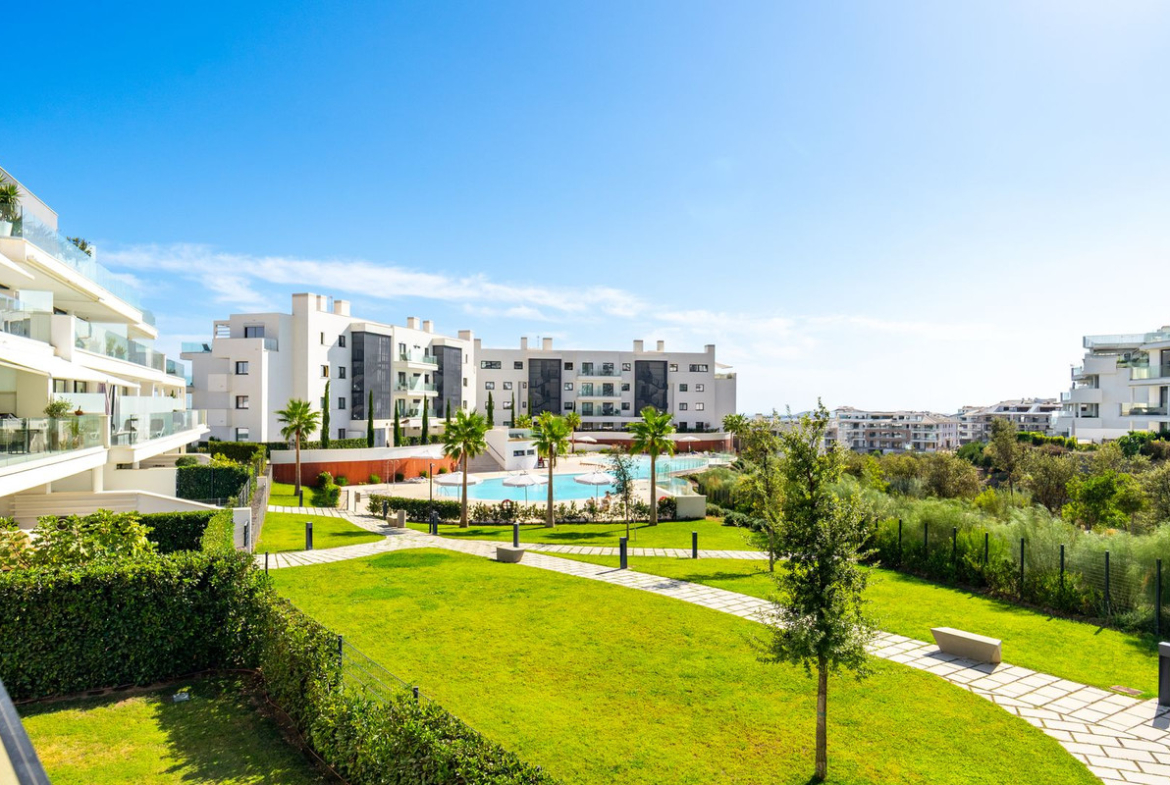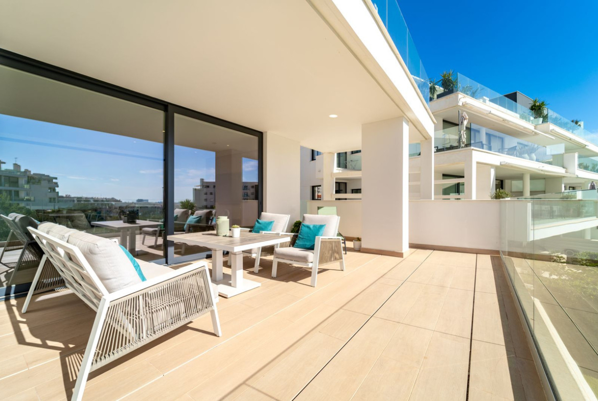 Elegant south-west facing apartment, in the exclusive urbanization of Higuerón West, with 3 bedrooms, 2 bathrooms and one guest toilet, spacious living-dining room, open plan kitchen fully furnished and equipped with electrical appliances from BOSCH, laundry area with washing machine/dryer, large terrace of 54m2 with pool and garden views.