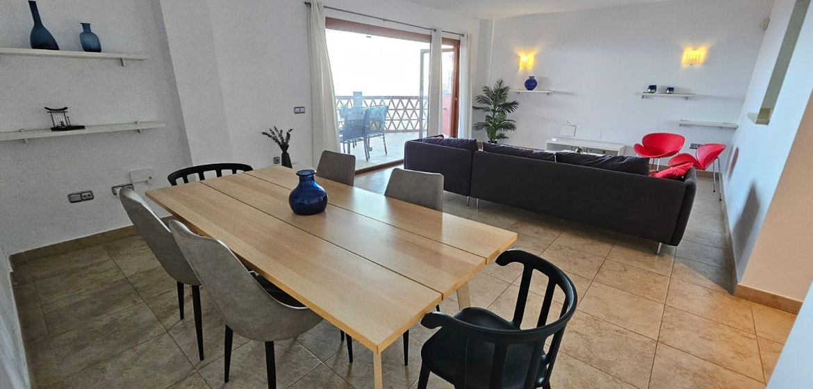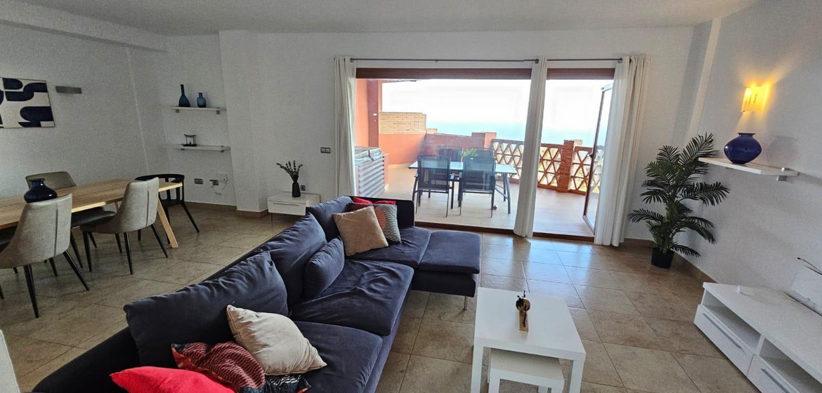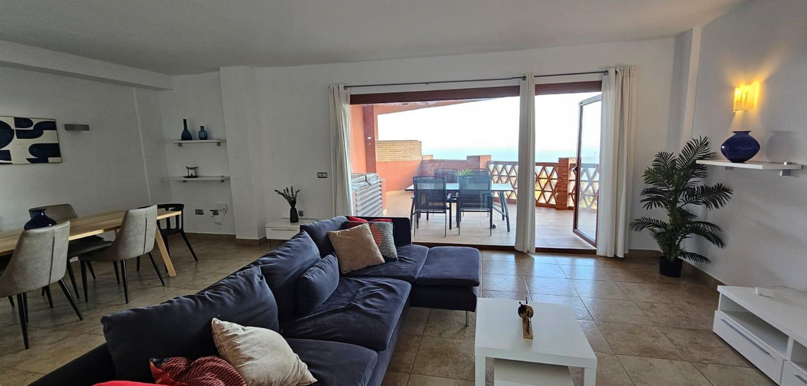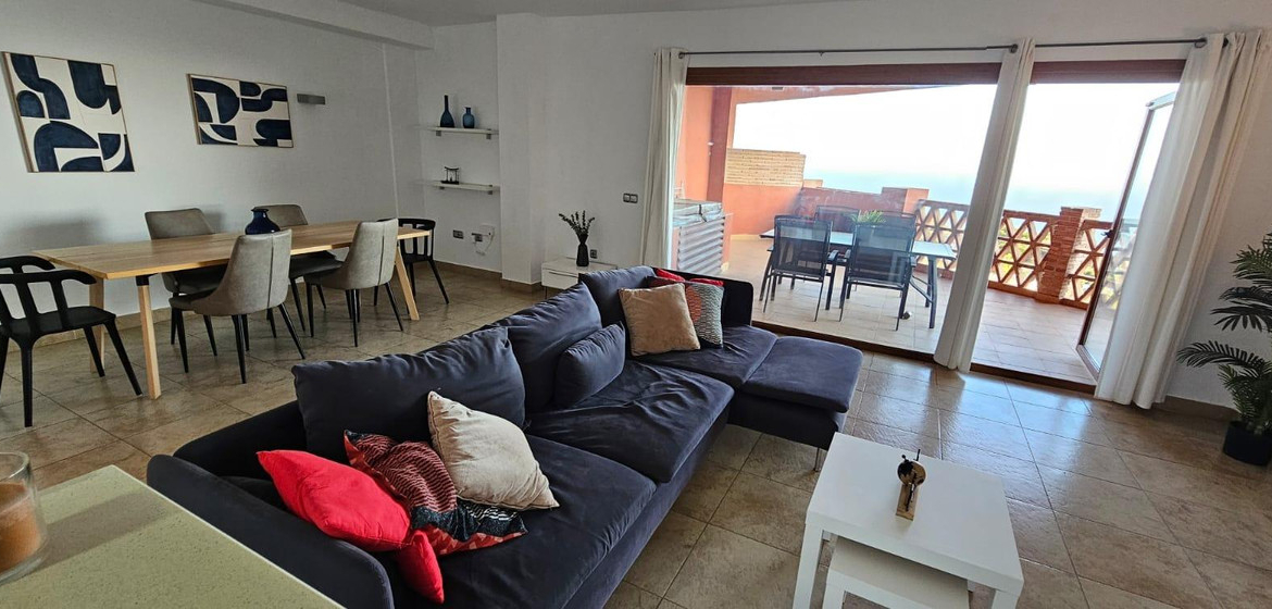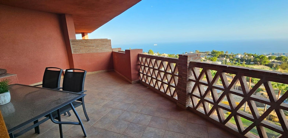We present a spacious duplex penthouse for sale in the Altos del Higuerón area, Benalmádena. The house has an entrance with a kitchen, bedroom, bathroom, living room and dining room with access to a beautiful terrace with wonderful open views. We go up to the first floor and find two bedrooms with two bathrooms. Suite. Dressing room in the master bedroom. Built-in wardrobes. Alarm, central air. The house is sold with two closed garage spaces in the same community. Gardens and two community pools. Ready to move in!