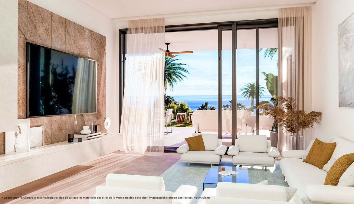 This modern 3-bedroom, 2-bathroom property offers a spacious open-plan layout with a bright living area and kitchen that flows seamlessly onto a generous terrace with beautiful sea views.