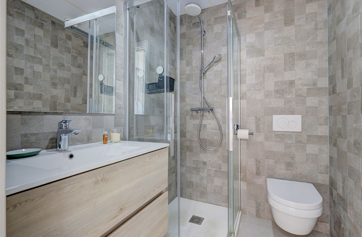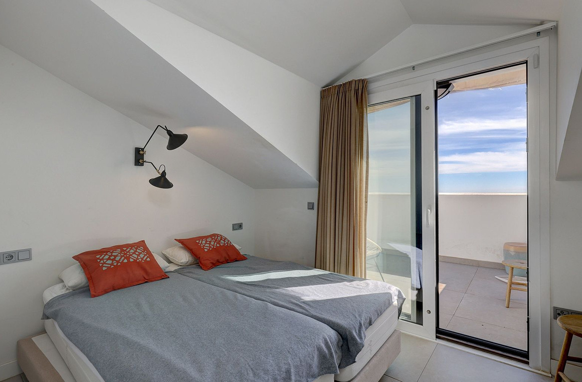 On the upper level there is the main bedroom with an en-suite bathroom and access to a spectacular rooftop terrace with a private jacuzzi and breathtaking views of the Mediterranean.