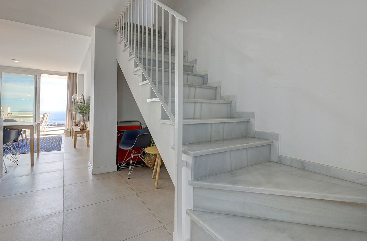 This elegant duplex penthouse enjoys stunning panoramic sea views and a prime location in Benalmádena, just a short drive from the beach and the picturesque village of Benalmádena Pueblo.