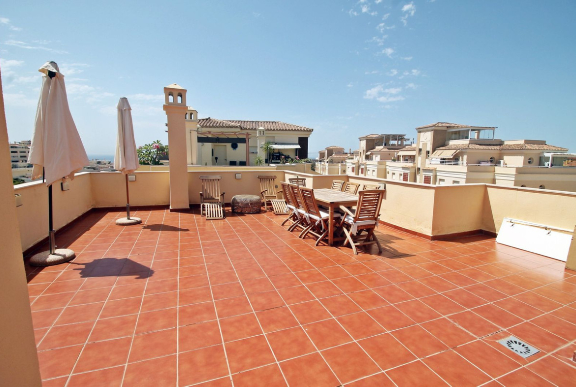 Exclusive duplex penthouse located in Torrequebrada, Benalmadena Costa. Situated on the third and top floor of a building with lift, the property has been refurbished and offers a constructed area of 115 m². Its distribution includes an entrance hall, a master bedroom with en suite bathroom, and two additional bedrooms, one of them with access to a small west facing terrace. The kitchen is independent, fully fitted and equipped, and the living/dining room is spacious and bright, leading out onto a lovely 15 m² south-east facing terrace with pleasant sea views.