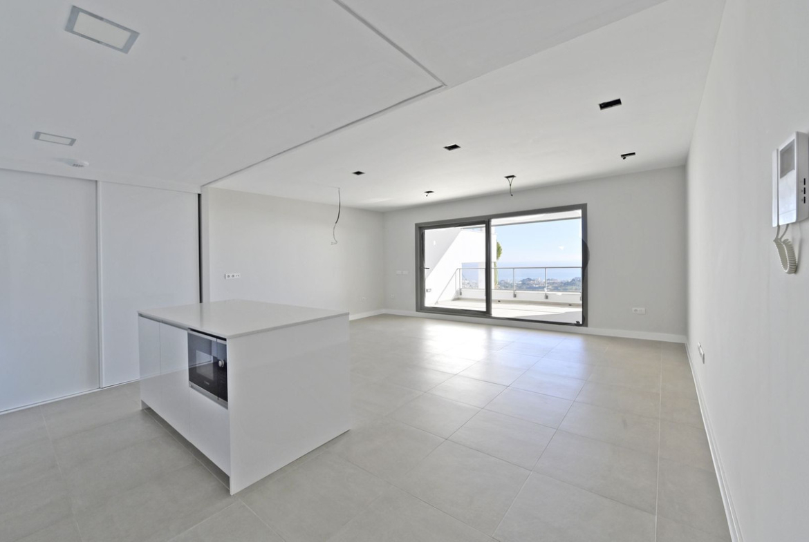The property has 3 bedrooms with fitted wardrobes and 2 full bathrooms, one of which is en suite in the master bedroom, a living room leading to a large 24.88 m² south-facing terrace with unobstructed sea views.