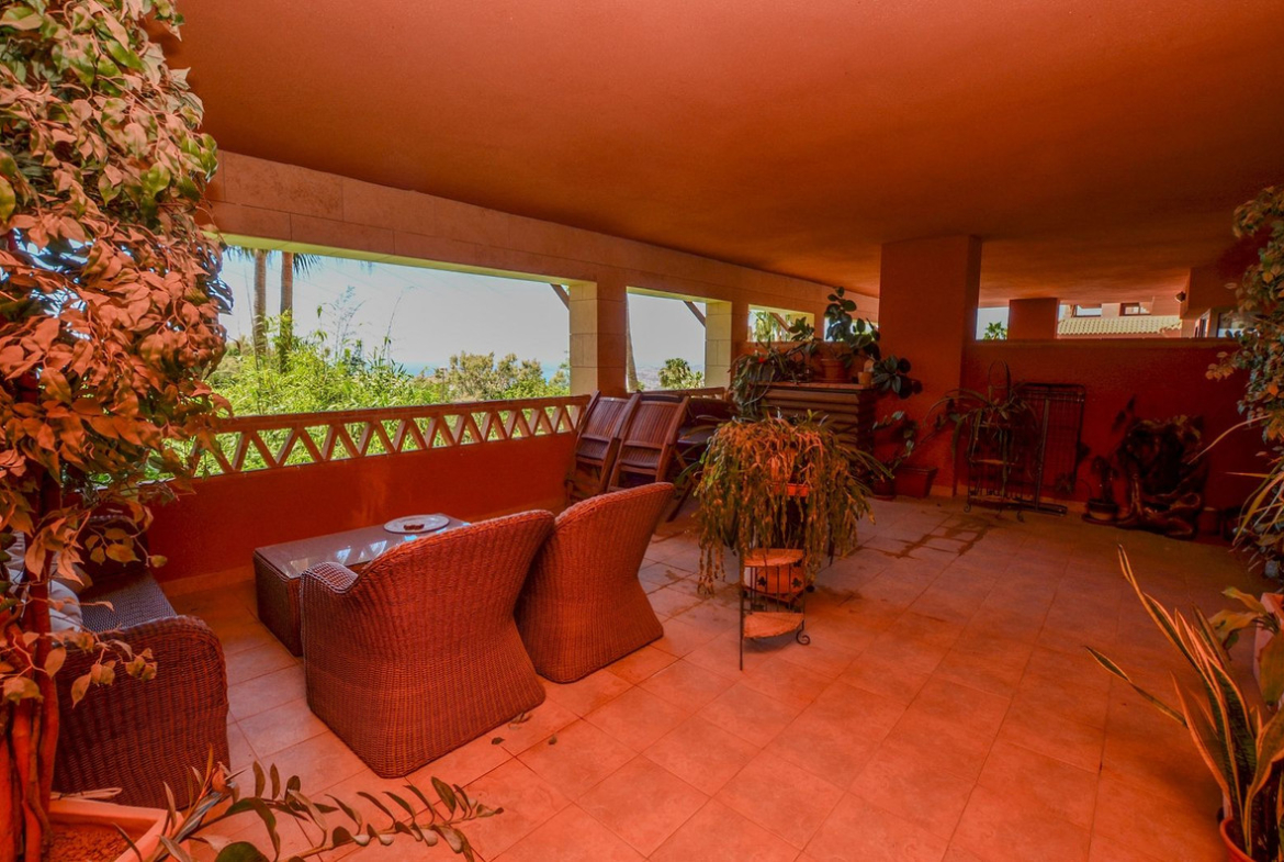 LARGE TERRACE of 38 m2, with views of the sea and the communal gardens. Being a corner property, it offers plenty of privacy.