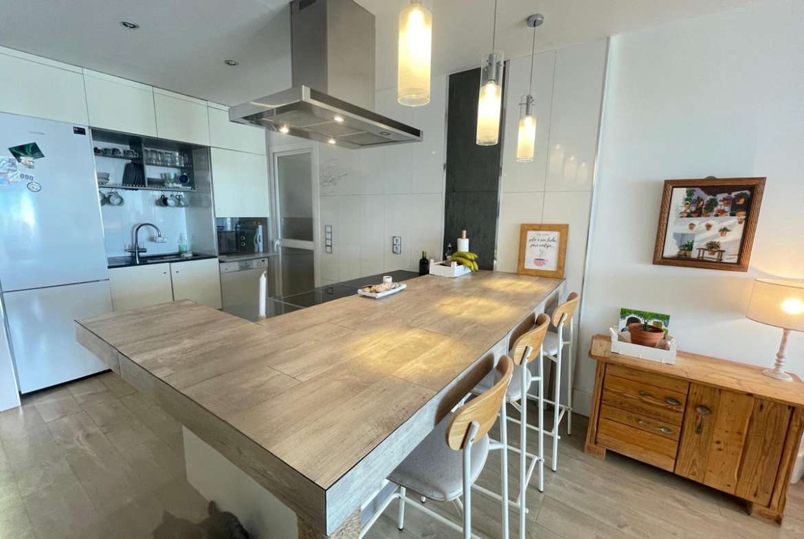 Located on the third floor of a gated residential complex, it features three bedrooms with built-in wardrobes, two bathrooms (one en suite), a separate laundry room, and an open-plan kitchen and living room—perfect for enjoying the light and space—with access to a charming terrace offering breathtaking views.