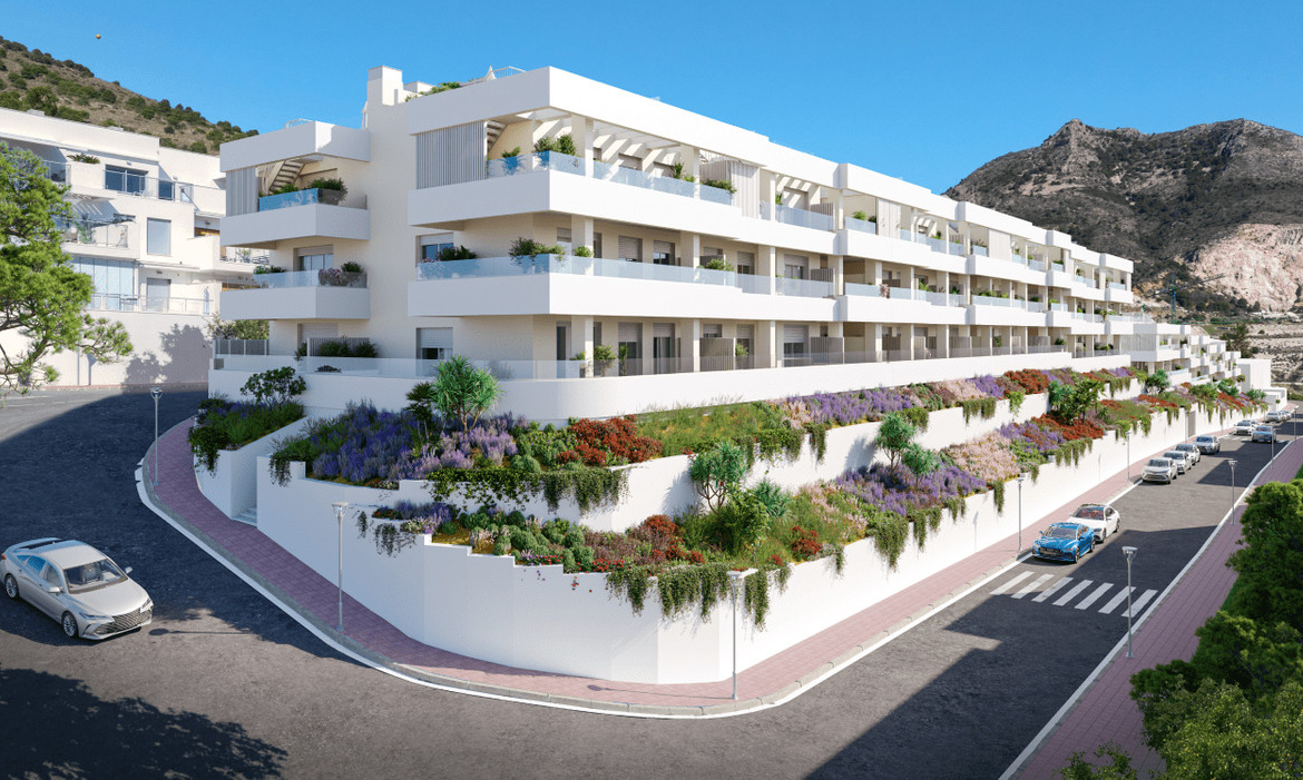Located on Calle Menta in Benalmádena (Málaga), this new residential development offers a private community of 70 homes with 2 and 3 bedrooms, featuring a wide variety of layouts, with penthouses standing out. The architecture and design focus on highlighting the terraces, which are designed to capture the natural light and sea breeze of the Costa del Sol, as well as offer sea views.