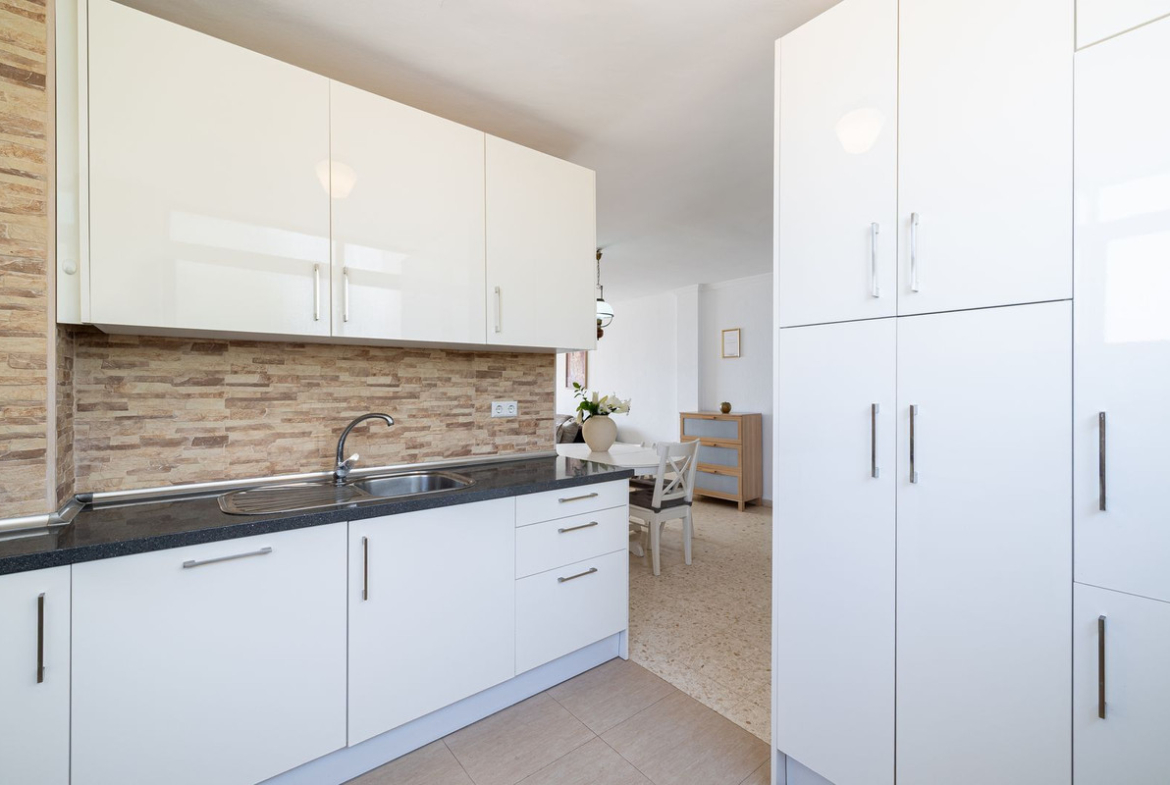 Welcome to one of the most sought-after locations in Benalmádena, situated right by the Mediterranean Sea with all essential amenities at your doorstep. This bright three-bedroom home features a unique layout where stunning sea views can be enjoyed from every single bedroom as well as the living room. The heart of the home is a modern, renovated open-plan kitchen that flows seamlessly into a spacious living area. Natural light floods through large windows, creating a warm and inviting atmosphere throughout the space.