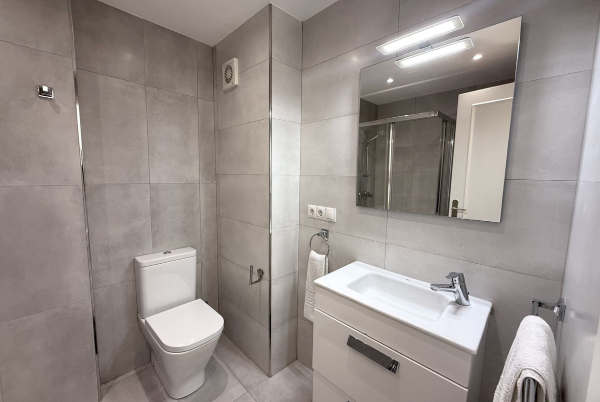 Upstairs, you will find a spacious master bedroom with an en-suite bathroom. The current owners have converted part of the bedroom into a storage room, which also has a window and can easily be used as an additional bedroom, office, or guest room if desired. This level also offers a larger southwest-facing terrace, ideal for sunbathing, outdoor dining, and relaxation.