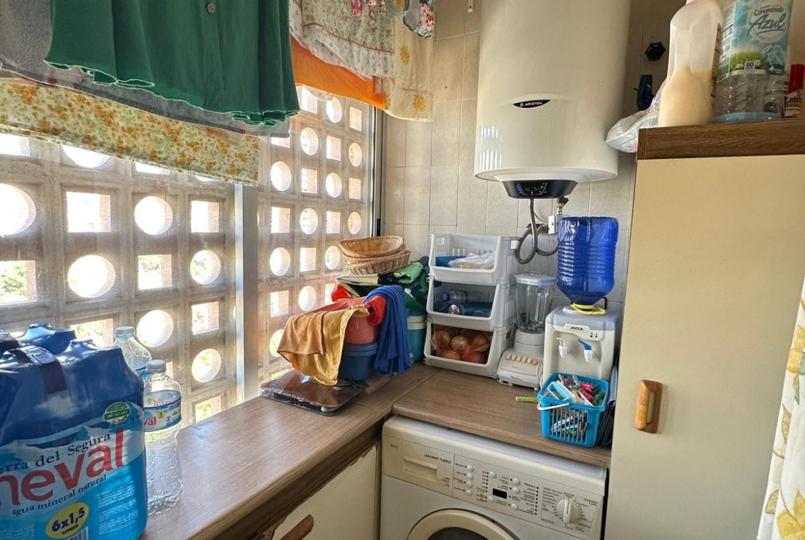 Spacious apartment with beautiful sea views in Coblanca 16, Phase IIts 100m2 are distributed in an entrance hall, independent kitchen with mountain views + gallery with laundry area, 2 full bathrooms, 3 double bedrooms + a large and bright living room, with a glazed terrace to enjoy all year round.It is worth noting that it is sold furnished, with a storage room and an unnumbered communal parking space within the residential complex (Possibility of a very large garage next to the entrance door for only €31,000)The development has a large outdoor swimming pool, paddle tennis court, community bar and beautiful garden areas. Privileged location, on the 6th floor of the Coblanca building, phase I, just 300 m from the beach. Close to all kinds of services, pharmacies, banks, supermarkets, restaurants, buses, etc.Request a visit and don't miss this opportunity, a great apartment at a good price.