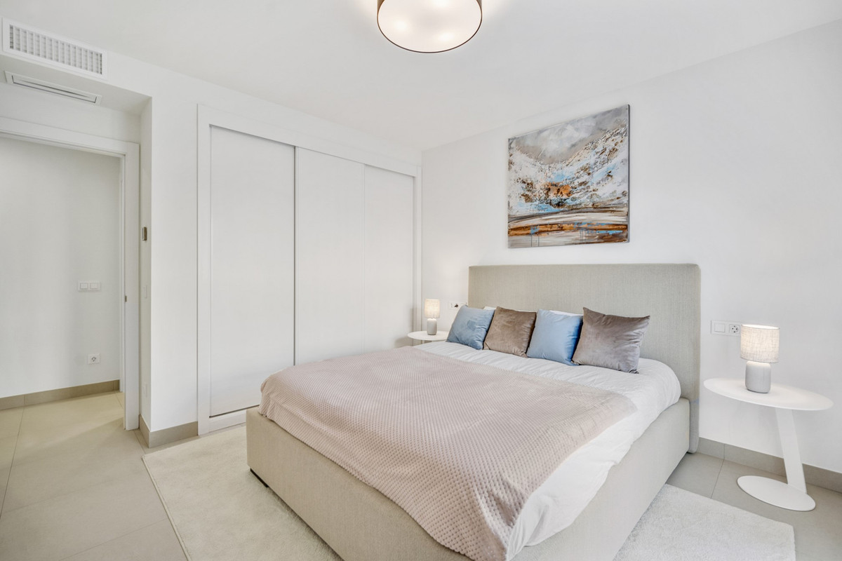 To the left of the living room is the main bedroom, a true refuge that has en-suite walk-through wardrobes and private bathroom, sea views and direct access to the terrace. It is the perfect place to disconnect and enjoy the tranquility.