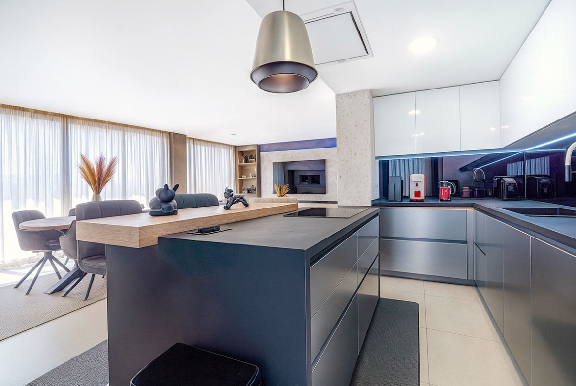 It has hot/cold air conditioning controlled by the best Air Zone home automation control system, underfloor heating throughout the interior area, LED lighting, designer kitchen with NEFF appliances, dressing areas in the bedrooms and large porcelain floors.