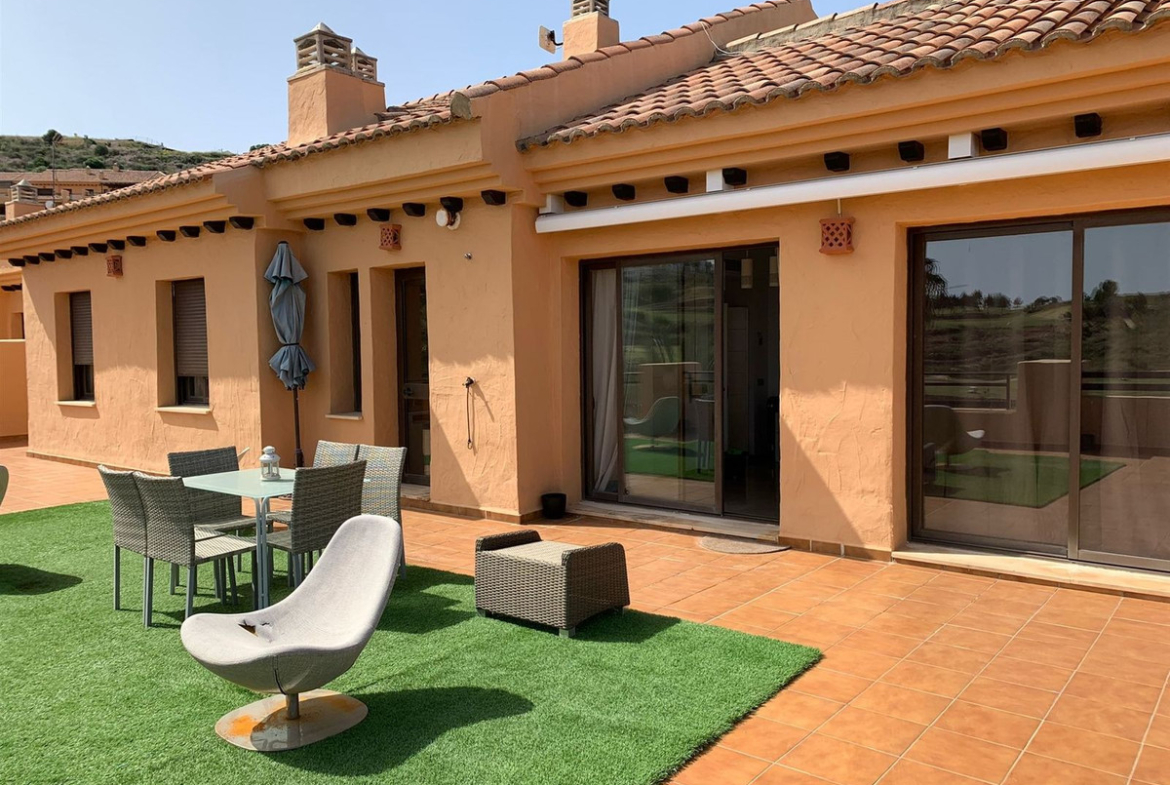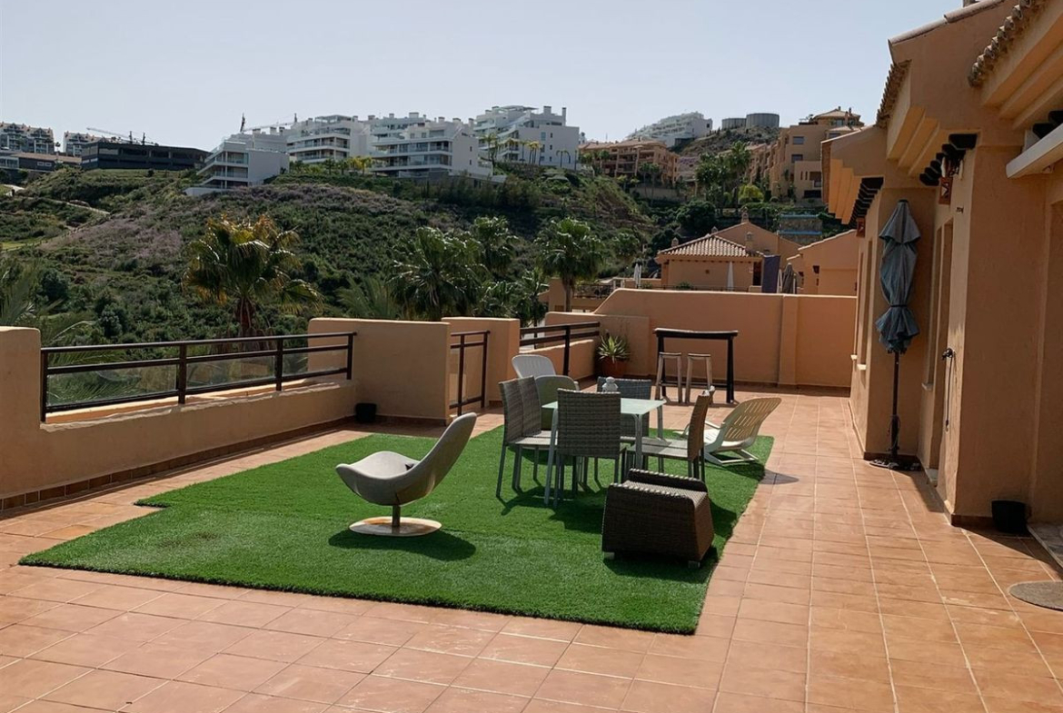 Beautiful corner penthouse in Andalucian style all in one floor. Next to Calanova Golf just 5 min drive down to La Cala de Mijas town and the beaches.