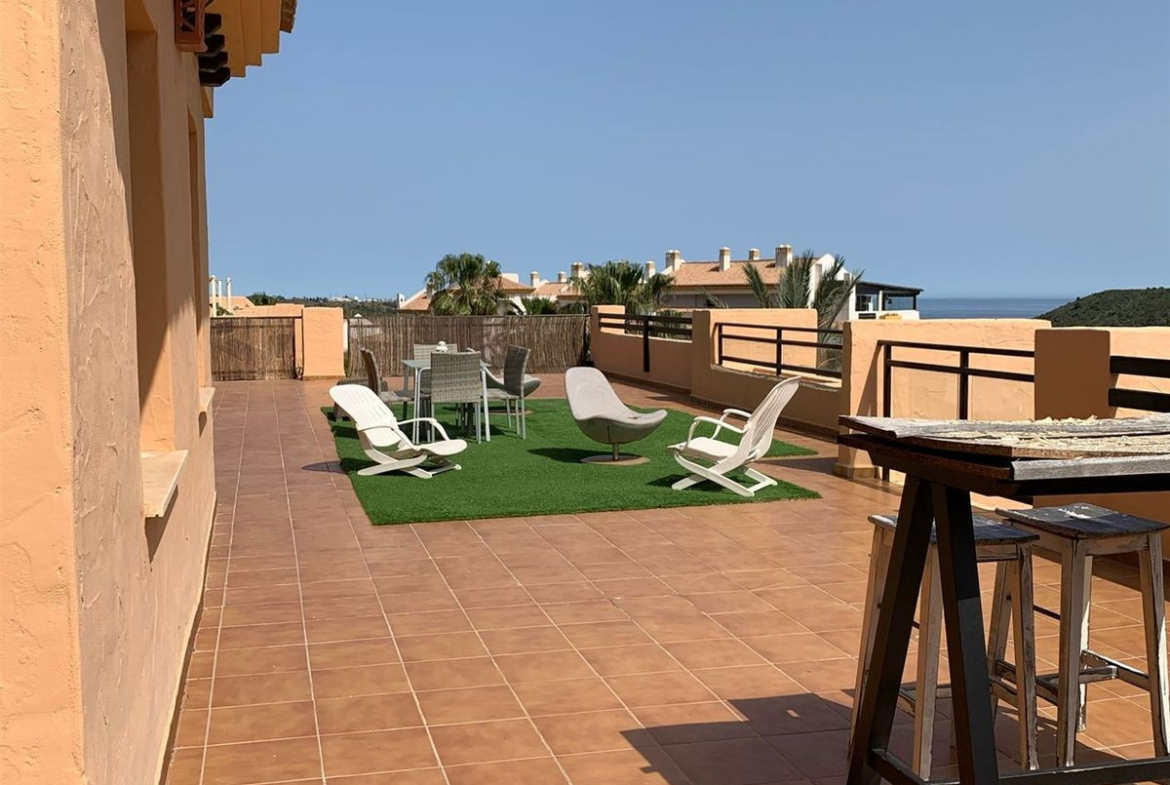 The penthouse has panoramic views with a parsal sea views and is situated in a tranquile urbanisation with tropical gardens with 3 pools.