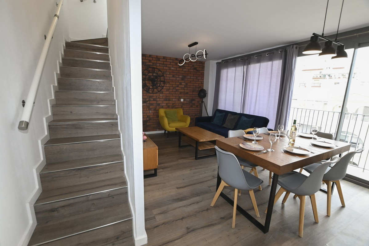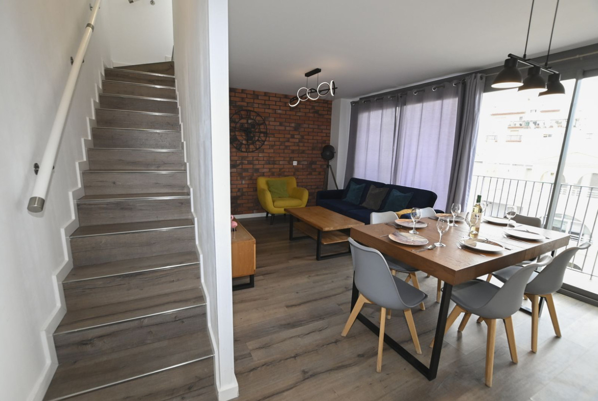Modern duplex apartment with a side sea view, located close to a beautiful sandy beach in Calpe. The property belongs to a gated complex with a communal swimming pool and a children's playground, situated in the city center near all amenities.