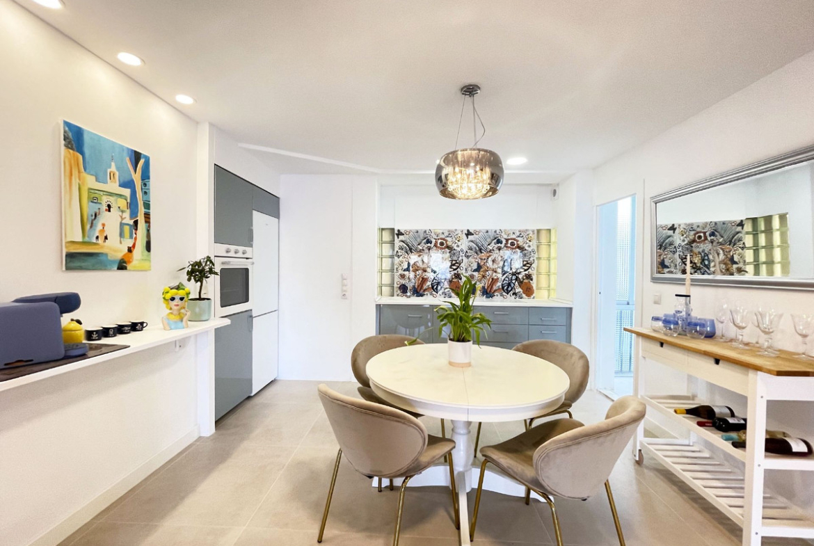 This renovated 103 m² apartment offers space and comfort, with an excellent location close to all services. The property features 2 large bedrooms, a small children’s bedroom, 1 full bathroom and 1 en-suite bathroom, as well as a bright living room with an open-plan kitchen. It also includes a covered terrace with pleasant views of Olta mountain.