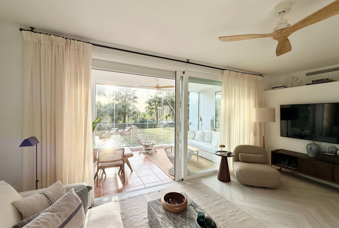 A beautifully renovated garden apartment with tropical views located within a gated community, home to a state-of-the-art 1,4 hectare lagoon with sandy beaches, water sports and restaurants – 6 unlimited lifetime passes included with the property sale.