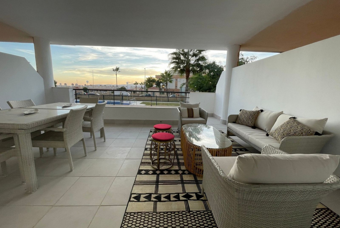Located in one of the most მშვიდ and up-and-coming areas of the Costa del Sol, this charming ground floor apartment offers the perfect balance between comfort, outdoor living, and proximity to the sea.