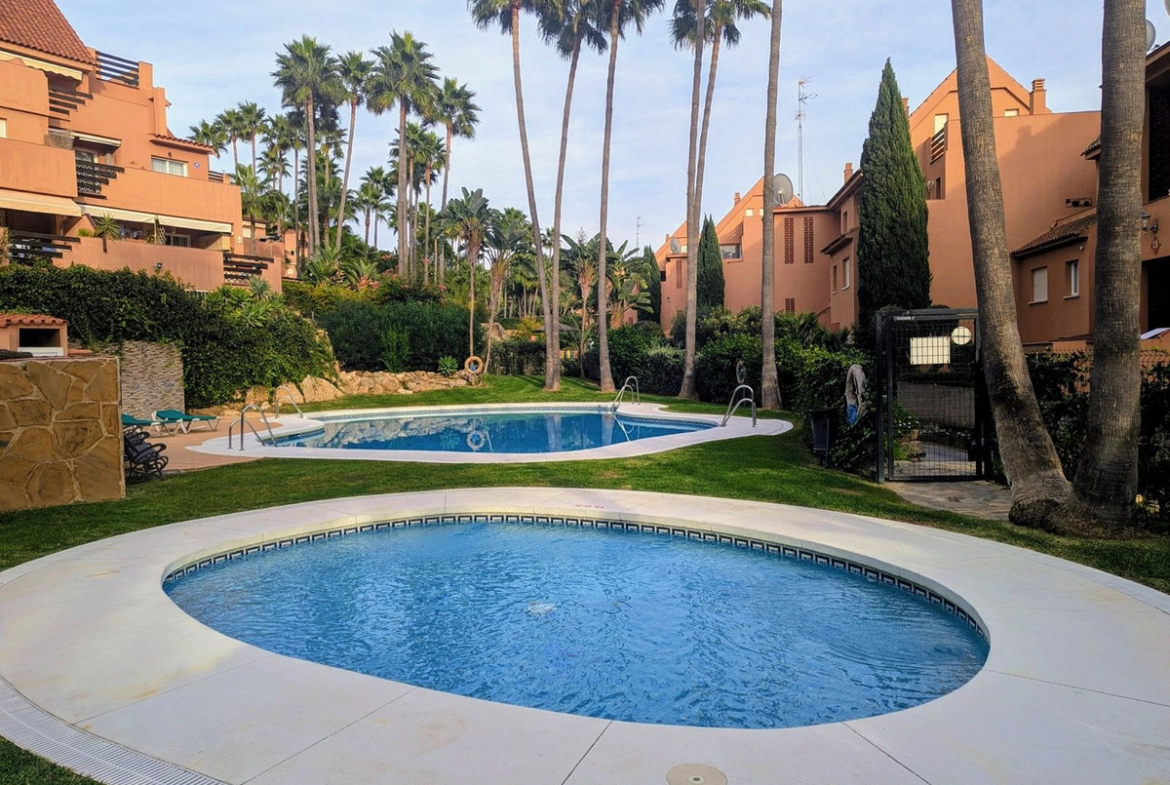 Bright south-facing duplex apartment for sale in the peaceful and well-established residential community of Bahía de Casares on the prestigious New Golden Mile.
