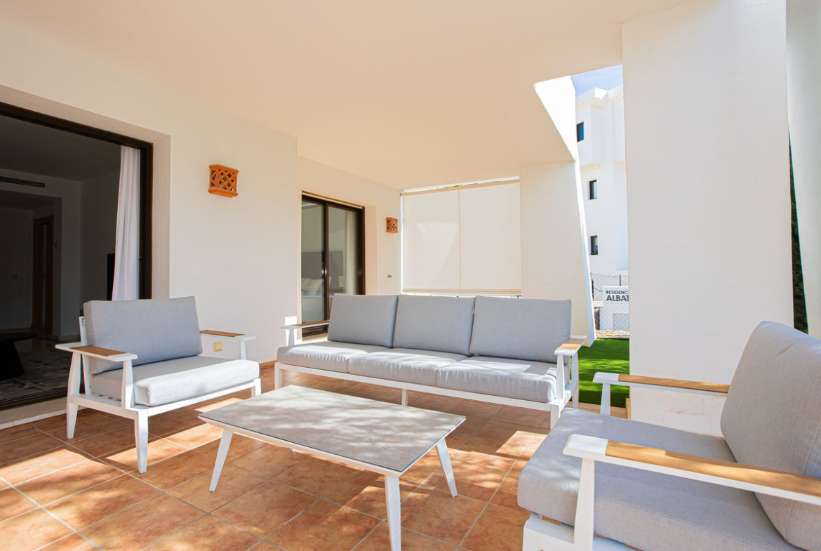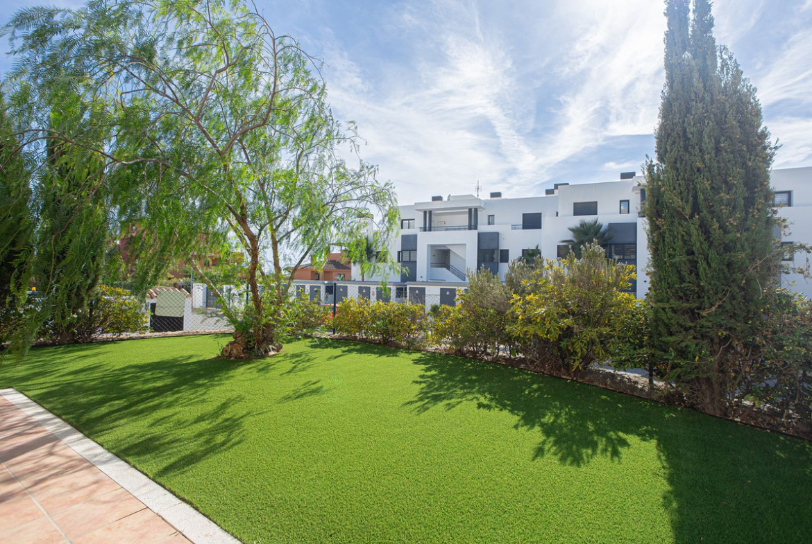 Quality ground floor 3 bedroom, 3 bathroom apartment with large outdoor covered terrace and garden – with Astro-Turf for easy maintenance.