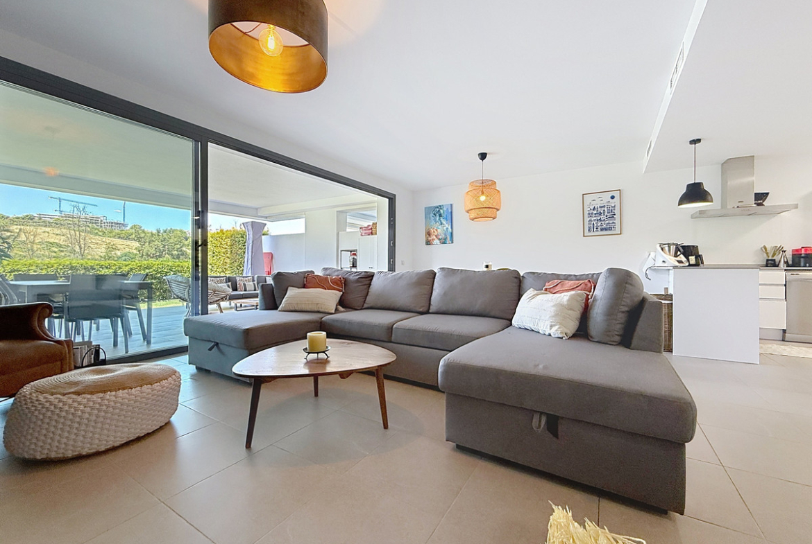 It features a spacious 36 m² terrace that opens onto a private wraparound garden of over 170 m², offering privacy and plenty of outdoor space.