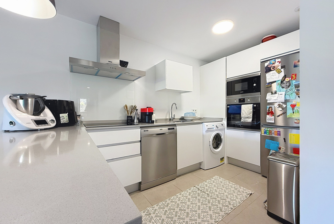 Inside, you’ll find a bright and generous living-dining area with a fully equipped open-plan kitchen.