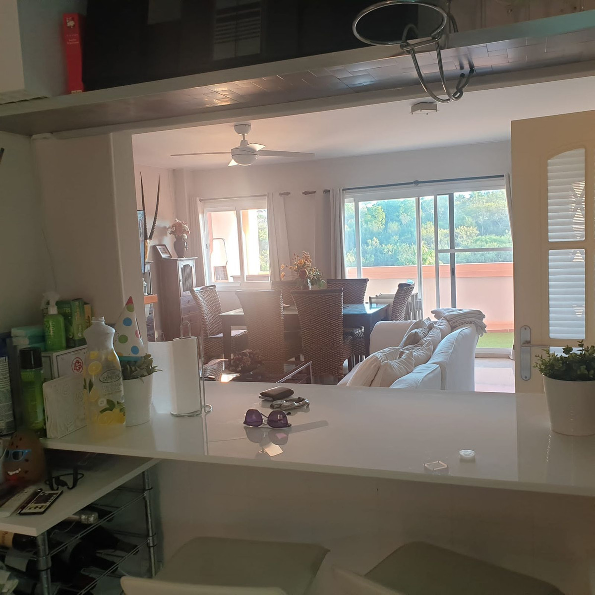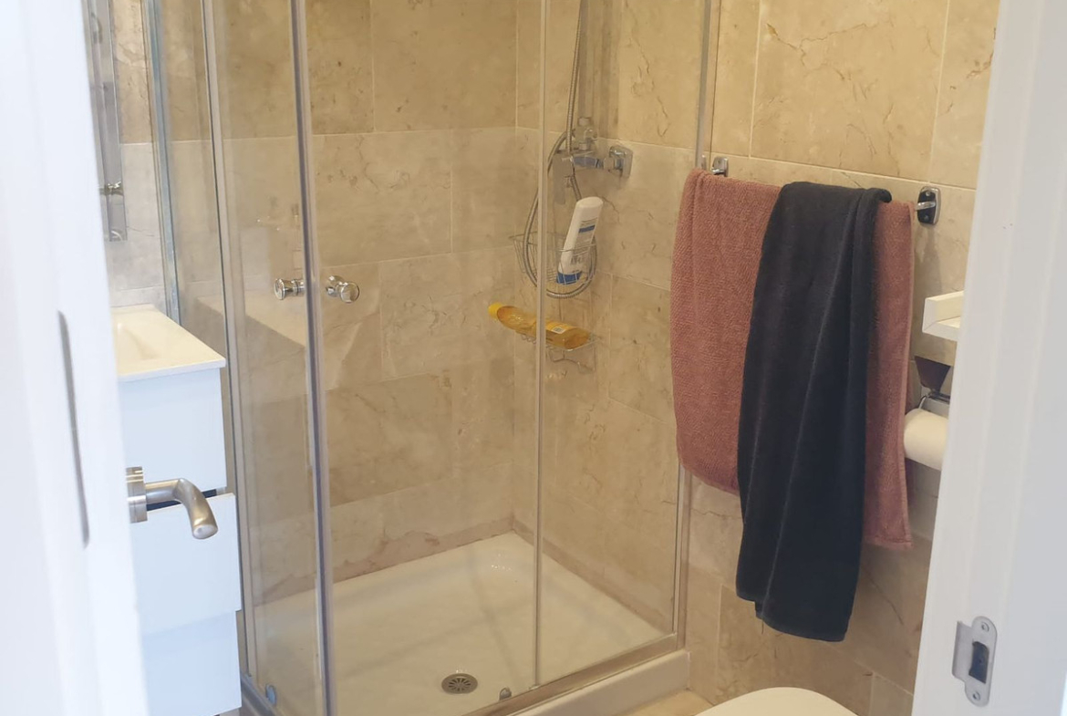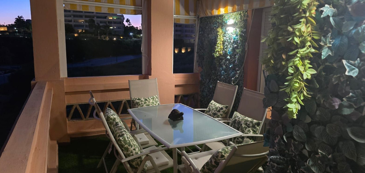 Duplex penthouse located in a rapidly expanding area between Fuengirola and Cala de Mijas (Chaparral-Calaburras golf course area), approximately 300 meters from Playamarina beach and El Charcón. It has 3 bedrooms, 2 bathrooms (one en suite with a hydromassage bathtub and separate shower), two living rooms, one on each floor, a fireplace, and an open-plan kitchen with state-of-the-art furniture. Marble floors and bathroom tiling. Recently renovated hot and cold air conditioning. Two large terraces, one per floor, equipped with sun awnings. The communal areas include gardens and a swimming pool for adults and children. The price includes a garage space and a large storage room