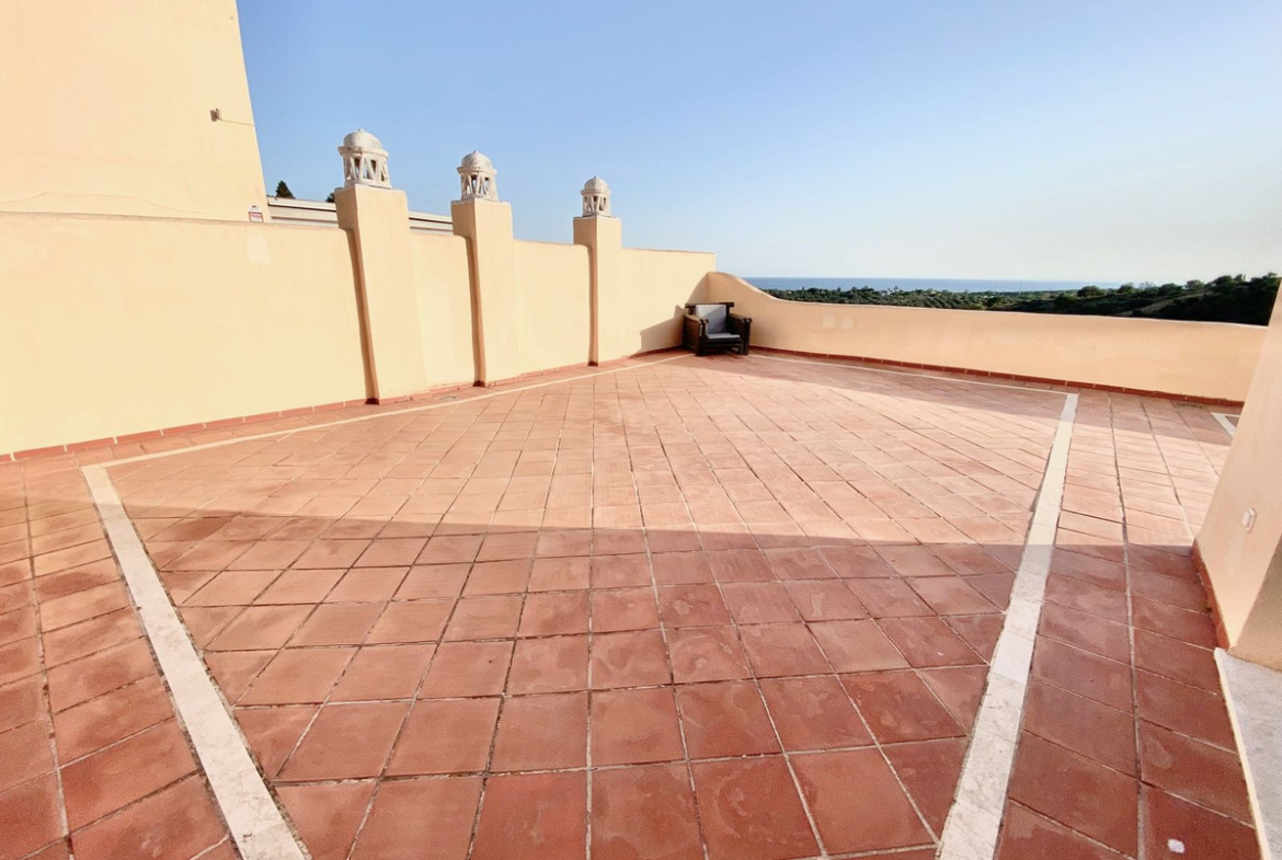 Apartment with 140 m2 inside and 210 m2 terrace features 3 bedrooms, the master bedroom is on the second floor and features an ensuite bathroom, a cloakroom, and a terrace, A fully equipped kitchen, 2 bathrooms, a guest toilet, and a living room with access to a huge southwest-facing terrace with incredible panoramic views of the sea and mountains.
