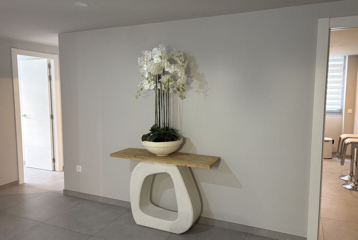 A brand-new apartment, perhaps the finest within this complex on the middle floor. Offering an excellent layout and expansive area (149 m2 + terrace), with views overlooking the garden, pool, and a bit of the sea.