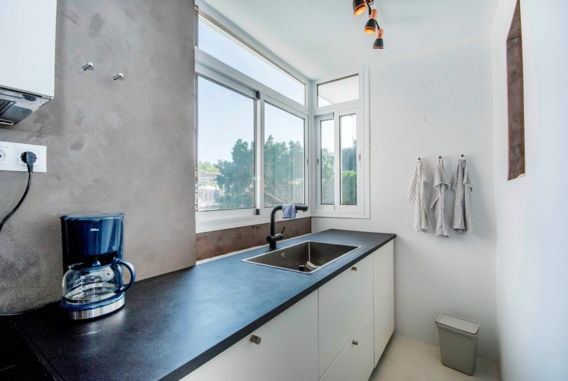 The living room, flooded with natural light thanks to large windows, opens onto a private terrace with panoramic views, providing the perfect setting to enjoy the warm climate of the Costa del Sol. The kitchen, equipped with modern appliances and elegant countertops, is a functional and aesthetically pleasing space for cooking enthusiasts.