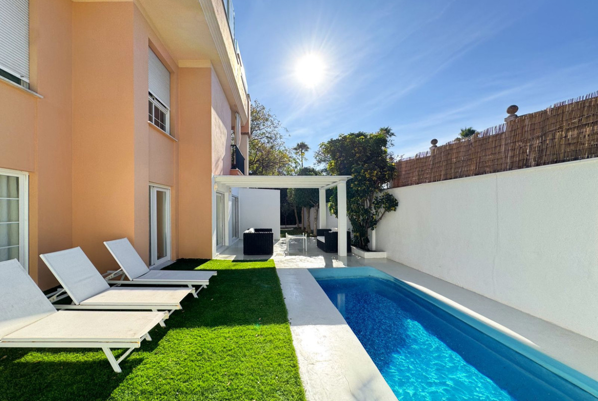Outside, you'll find a 150 m² private garden, the perfect place to enjoy tranquility outdoors. The apartment also features a terrace with a solarium and a private pool, where you can relax and enjoy unique moments in complete privacy.