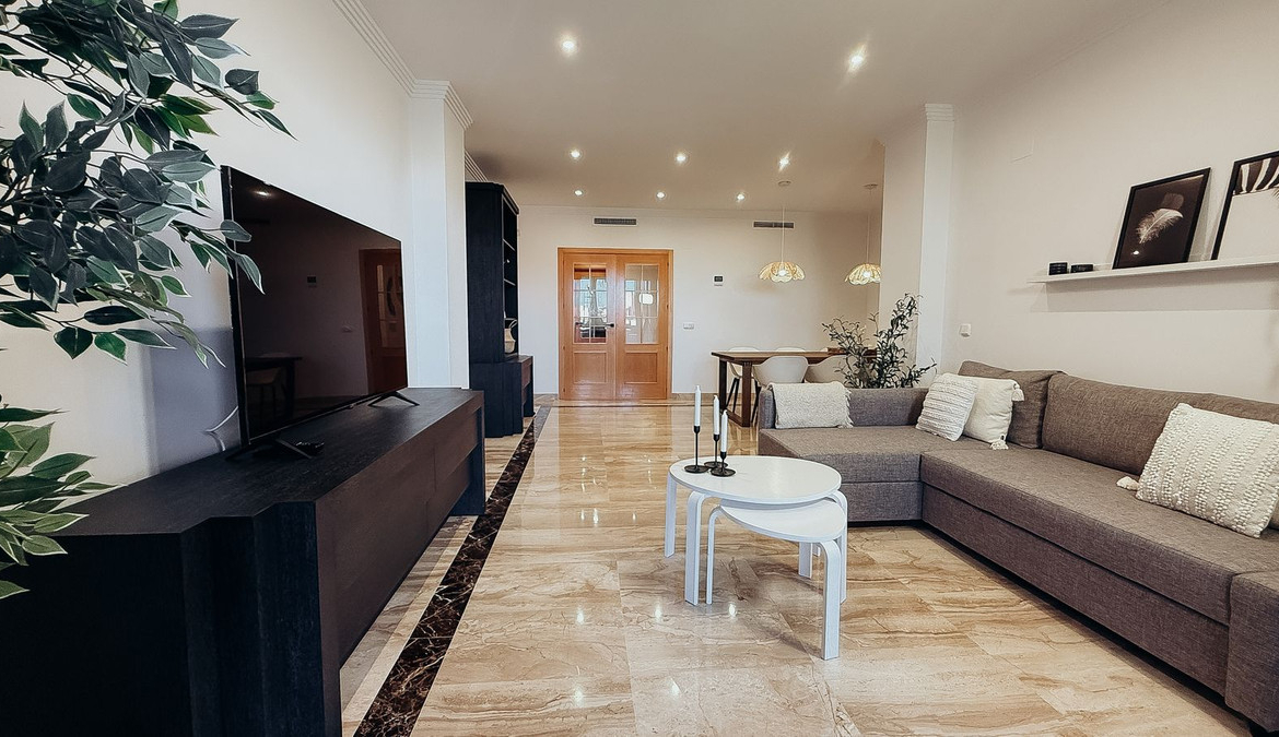 Bright and spacious 3-bedroom, 2-bathroom apartment located in the prestigious and secure urbanization Las Nayades, on the New Golden Mile of Estepona. The property features fully renovated bathrooms and offers everything for a comfortable Mediterranean lifestyle or a smart investment.
