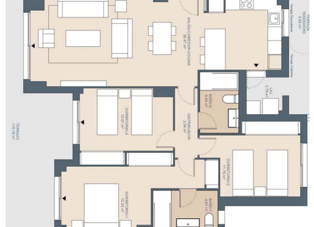 One of the apartment’s standout features is its impressive 100 m² private terrace, enjoying sun throughout the day. Perfect for outdoor dining, lounging, and entertaining, this expansive terrace truly extends the living space and offers the ideal setting for enjoying the Costa del Sol lifestyle.