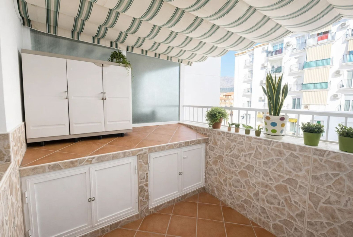 The property benefits from a private terrace, accessed from one of the bedrooms, offering a pleasant outdoor space to relax and enjoy the Mediterranean climate. Although compact in size, the terrace provides enough room for a small seating area, making it ideal for morning coffee or unwinding in the evening. Its position allows for natural light and fresh air, adding an additional sense of openness to the apartment while still maintaining privacy.