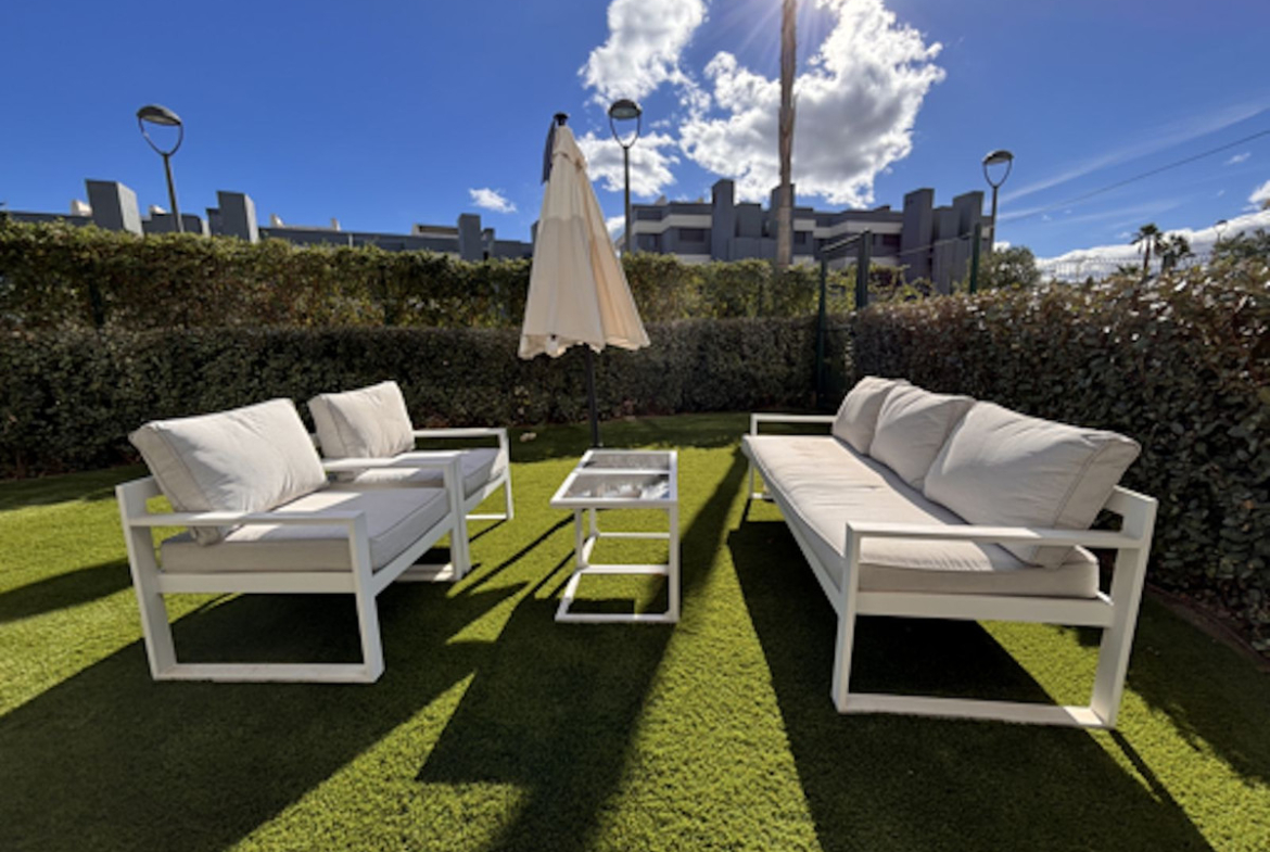 Modern Mediterranean corner ground-floor apartment located between Estepona and Puerto Banús, offering a unique opportunity to enjoy an exclusive lifestyle in the sought-after area of La Resina. Featuring three bedrooms and two bathrooms, this property stands out for its contemporary design and seamless connection between indoor and outdoor spaces. Its south-facing orientation ensures natural light throughout the day, while the spacious private garden with pool views creates an ideal setting for relaxation or social gatherings in total privacy