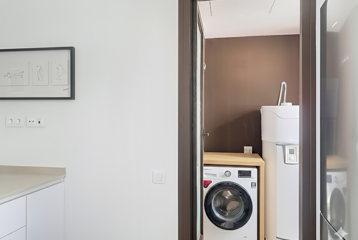 The finishes have been carefully selected: porcelain stoneware floors, white lacquered doors, exterior carpentry with double glazing, and motorized shutters in the living room and bedrooms. Additionally, it features ducted air conditioning with independent control, aerothermal system for hot water, and mechanical ventilation to ensure maximum comfort and energy efficiency throughout the year. The apartment includes 2 underground parking spaces and a large storage room, all within a gated complex that offers security and peace of mind.