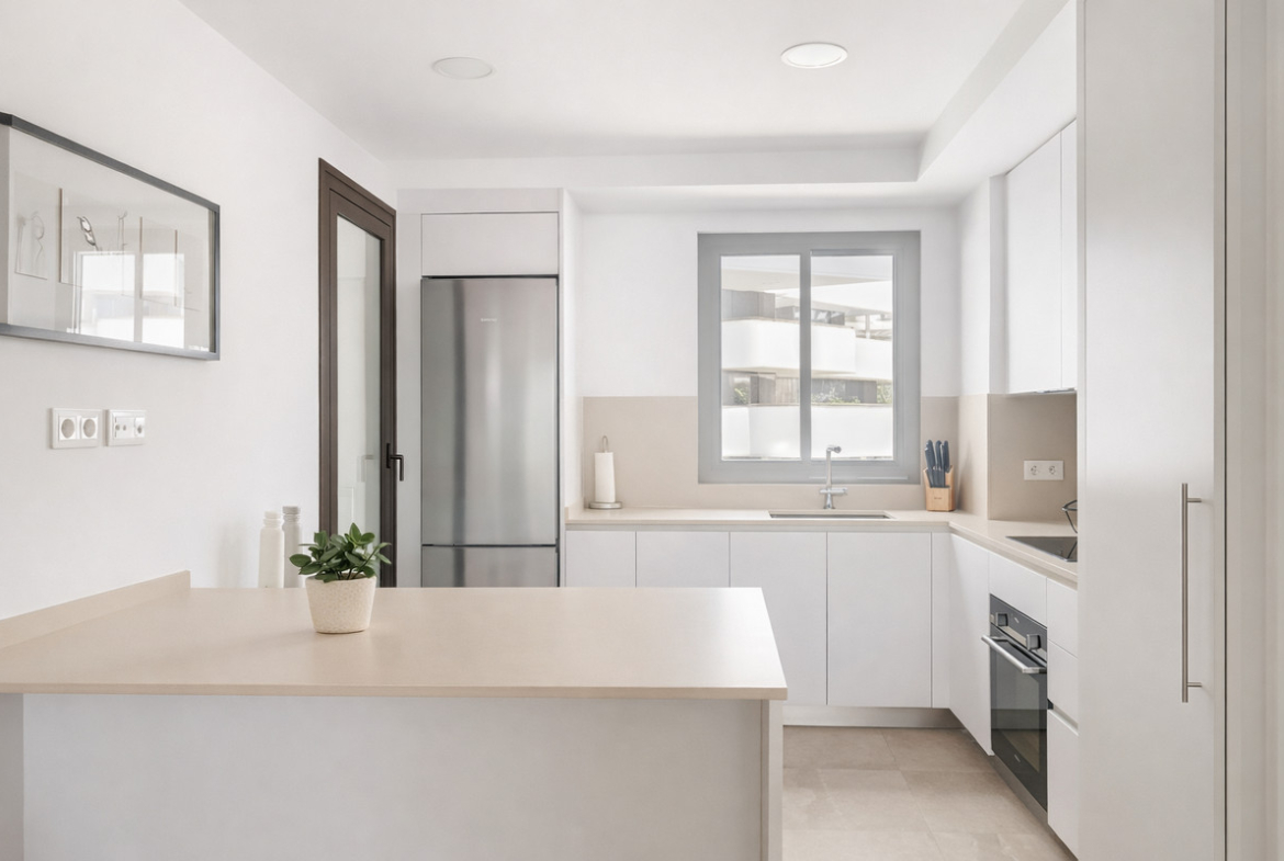 This ready to move in duplex penthouse, set within a modern community in Las Mesas of Estepona Port area, stands out for its impressive solarium with panoramic sea views. Built in 2025, the property offers a contemporary lifestyle in a sought-after location, with easy access to local amenities, beaches, golf courses, shops, restaurants, and schools. The residence forms part of a gated community featuring a communal pool, mature gardens, gym, and sauna, ensuring a comfortable and convenient living environment.